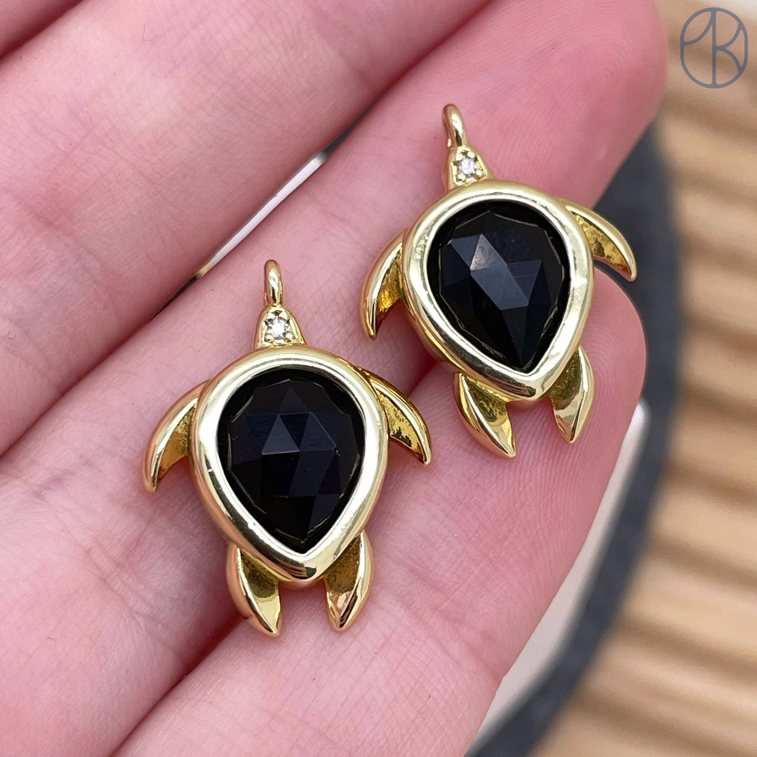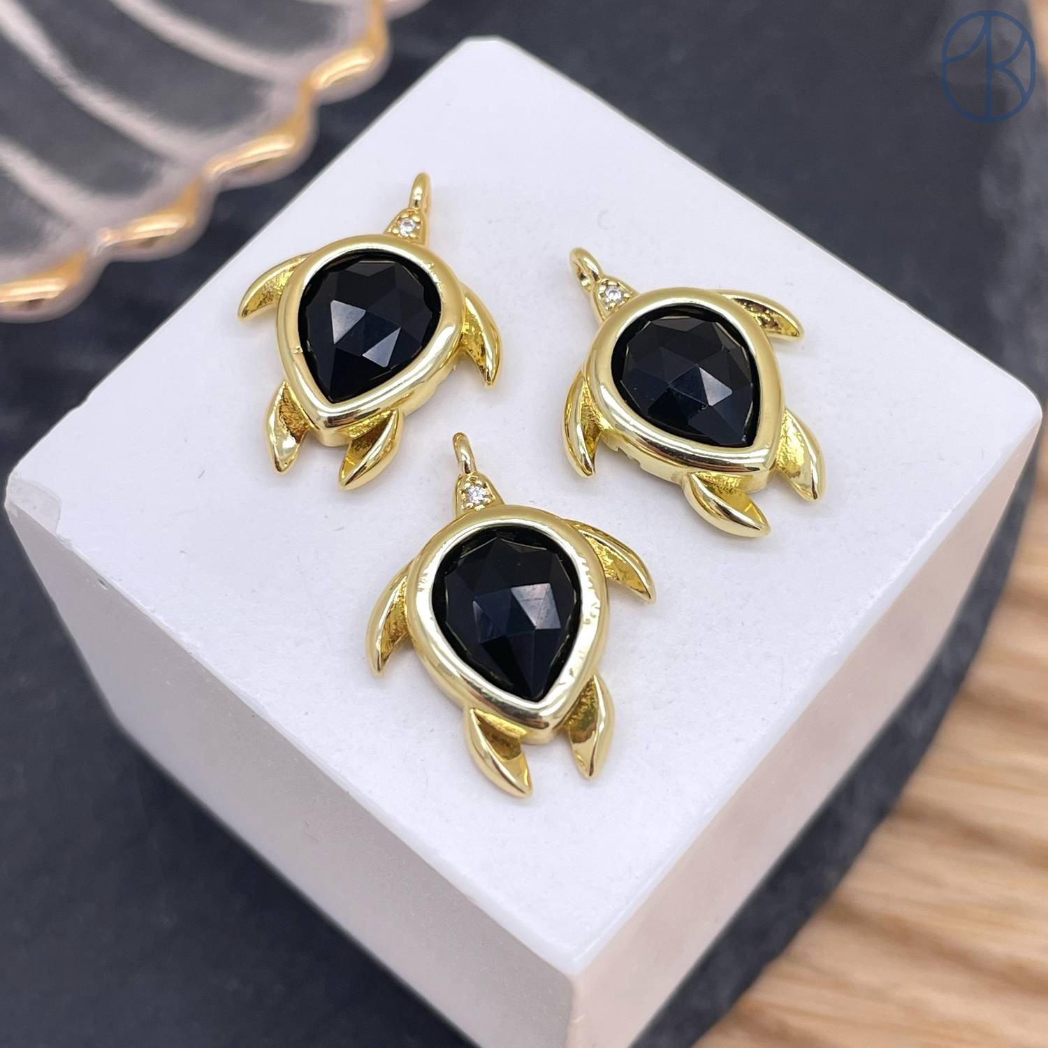 Подвеска черепаха огранка черный агат, цвет золото 15 мм