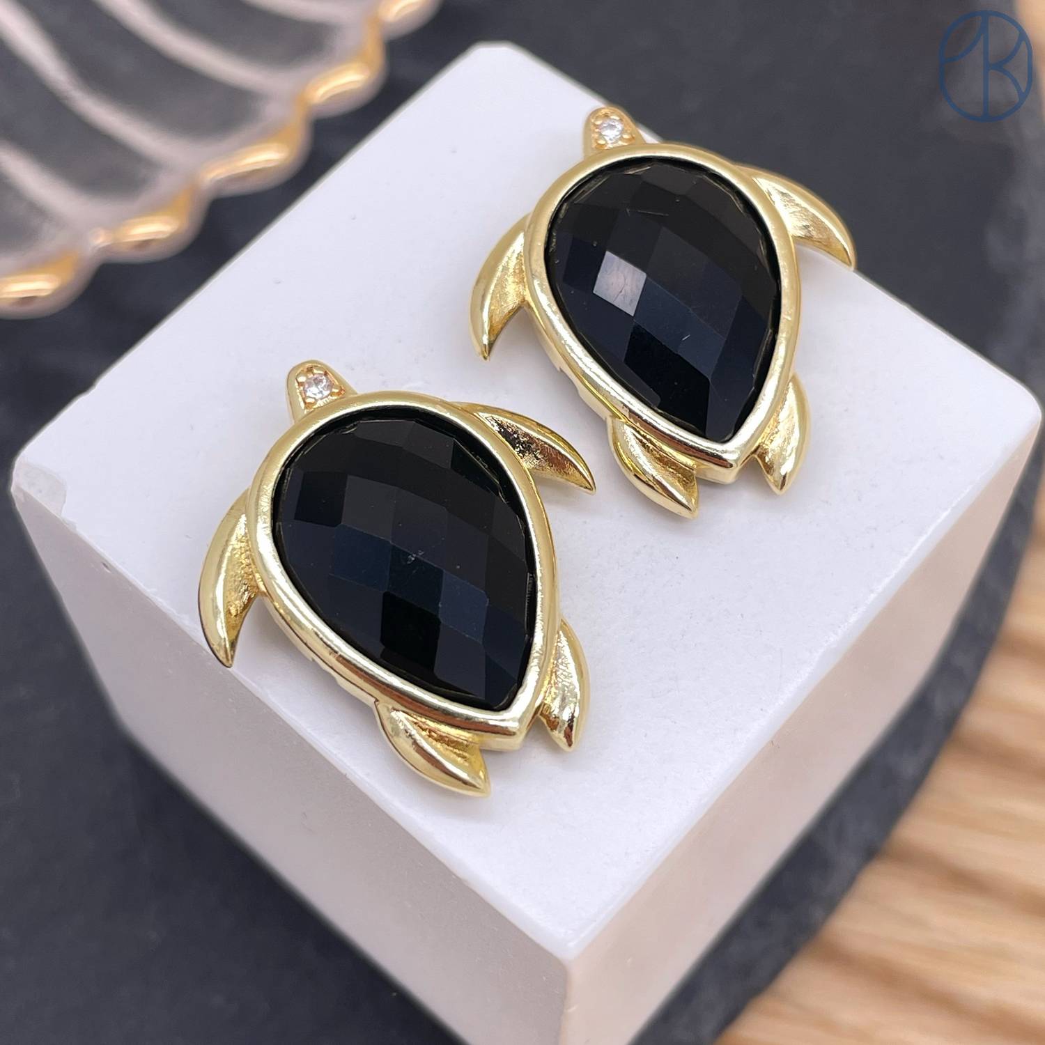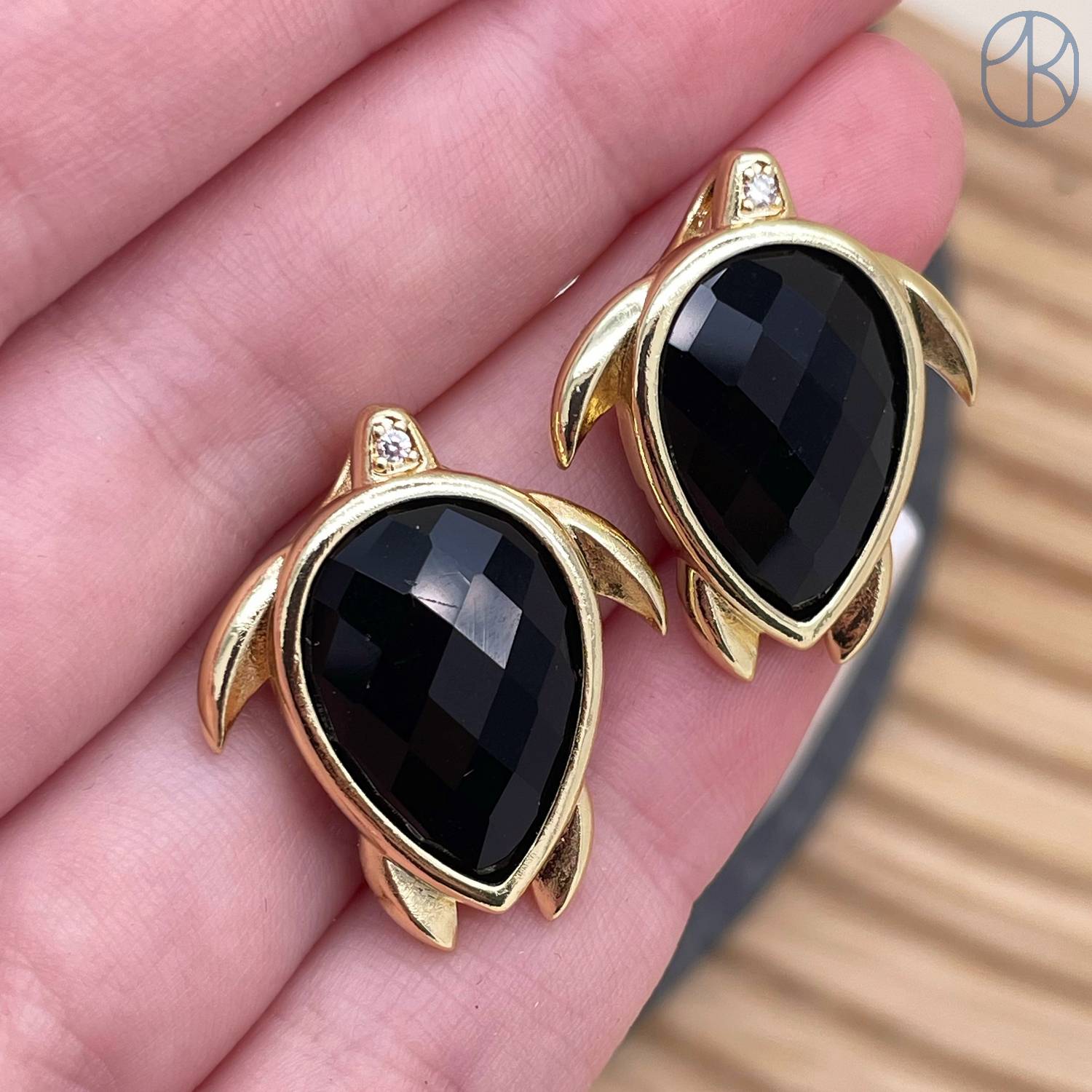 Подвеска черепаха огранка черный агат, цвет золото 25 мм
