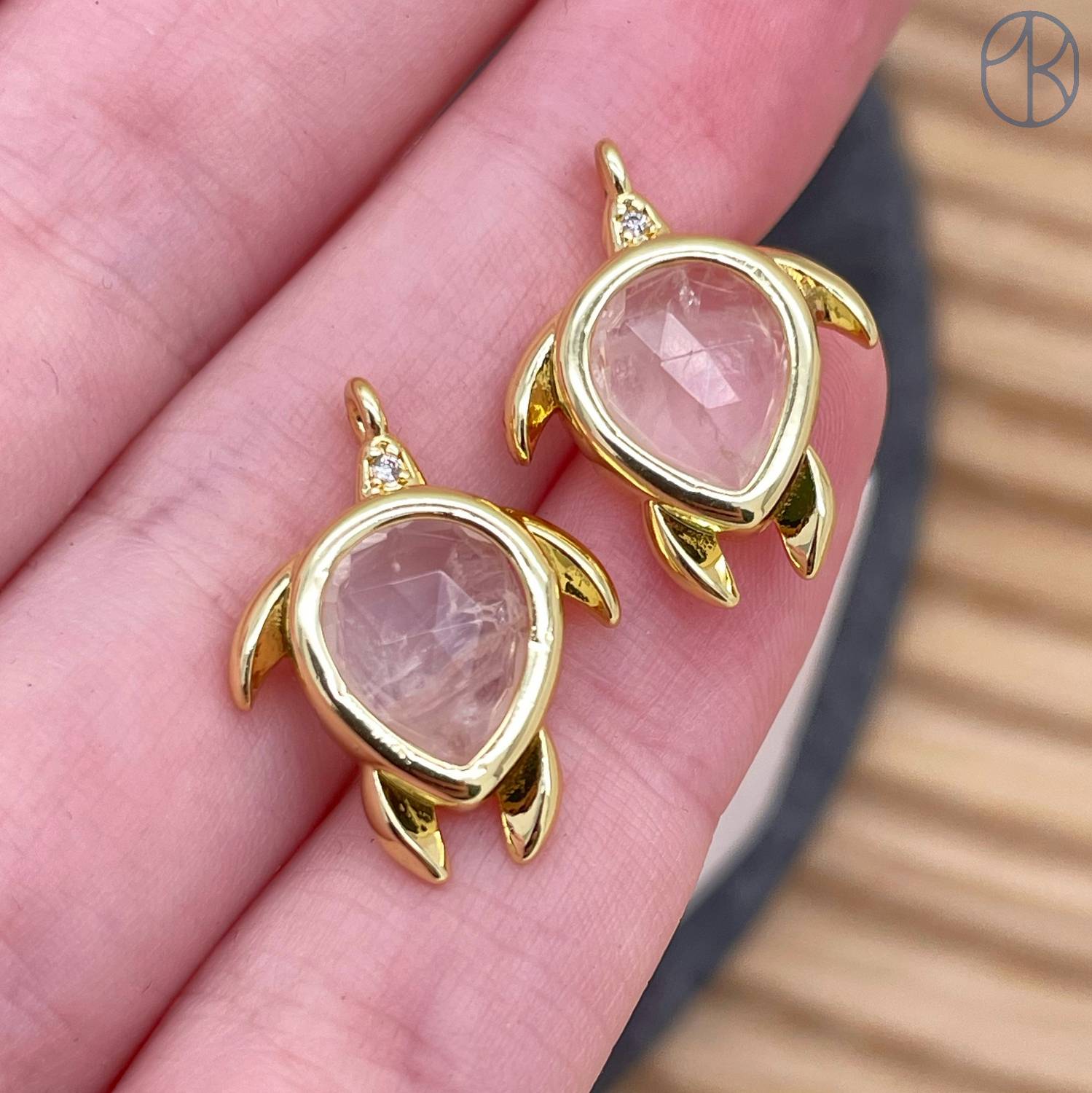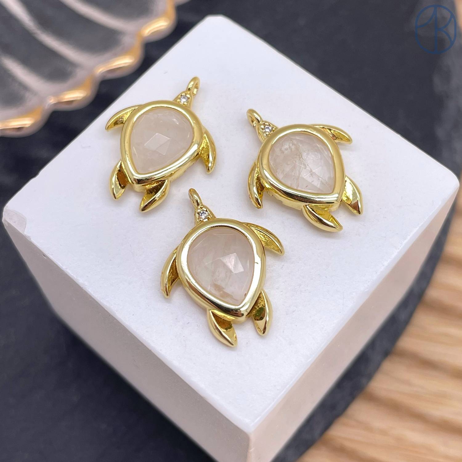 Подвеска черепаха огранка горный хрусталь, цвет золото 15 мм