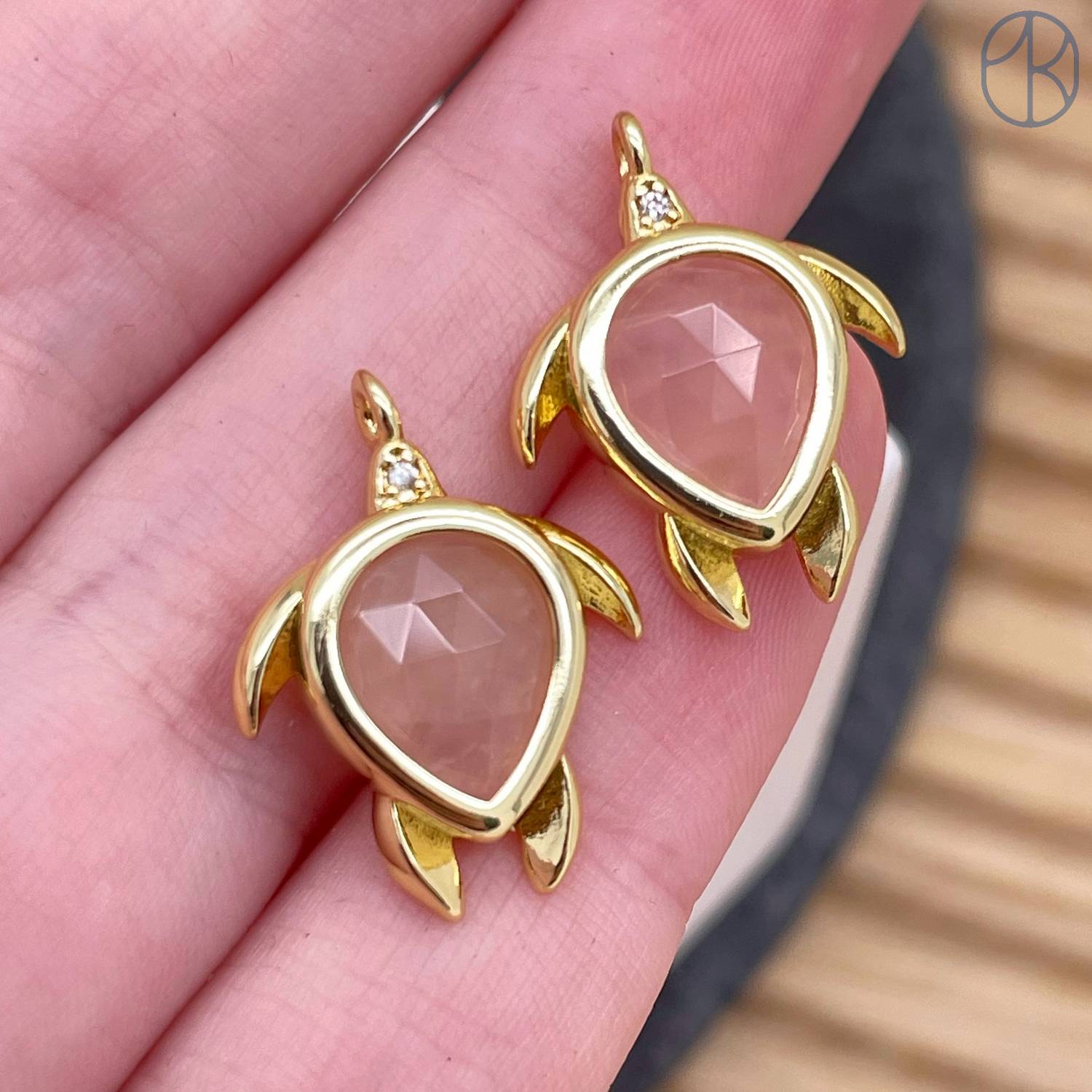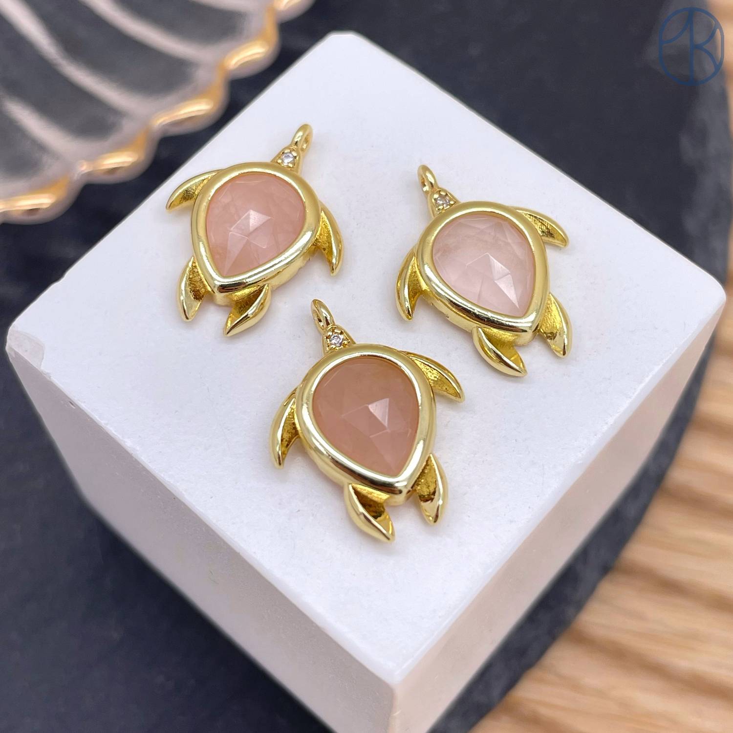 Подвеска черепаха огранка розовый кварц, цвет золото 15 мм