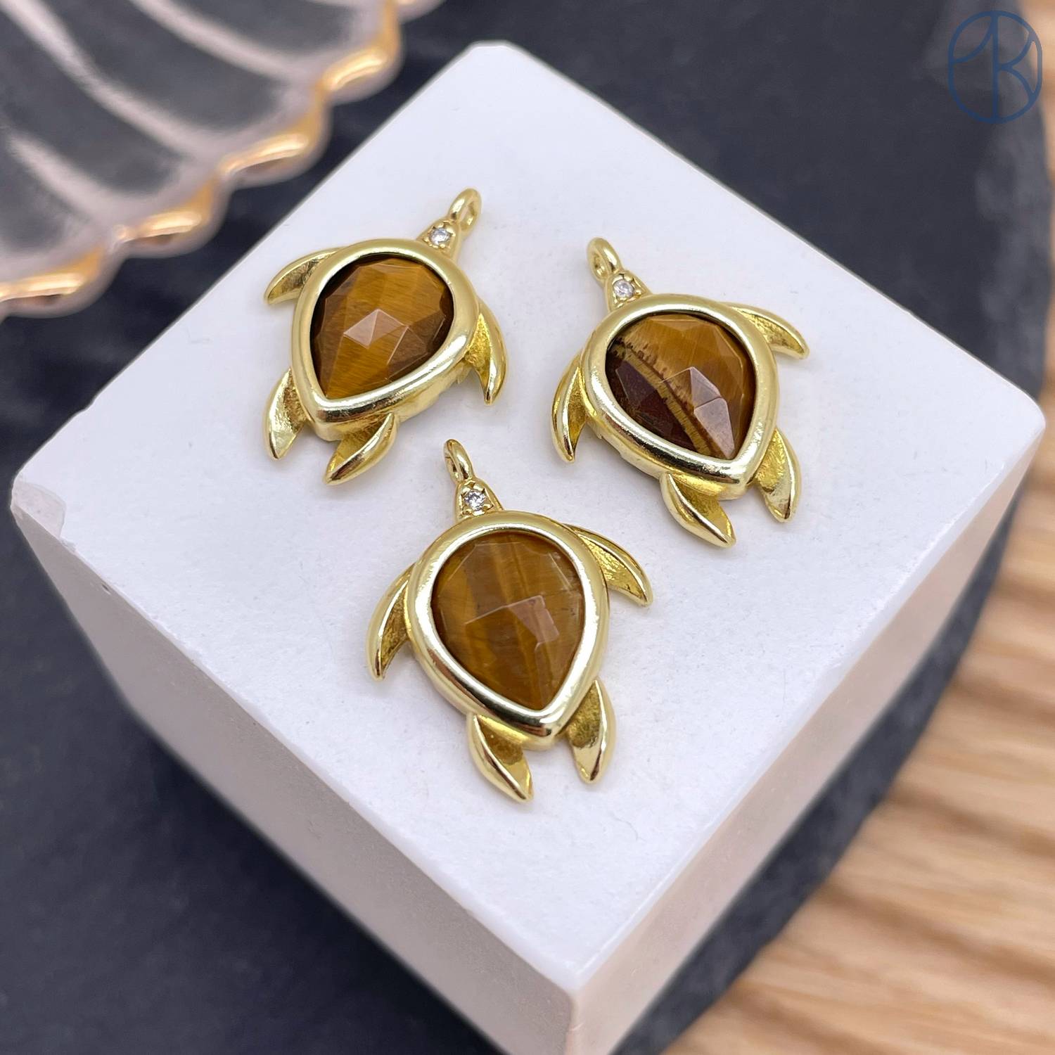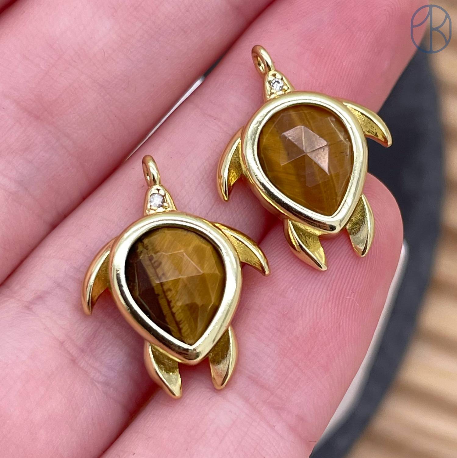 Подвеска черепаха огранка тигровый глаз, цвет золото 15 мм