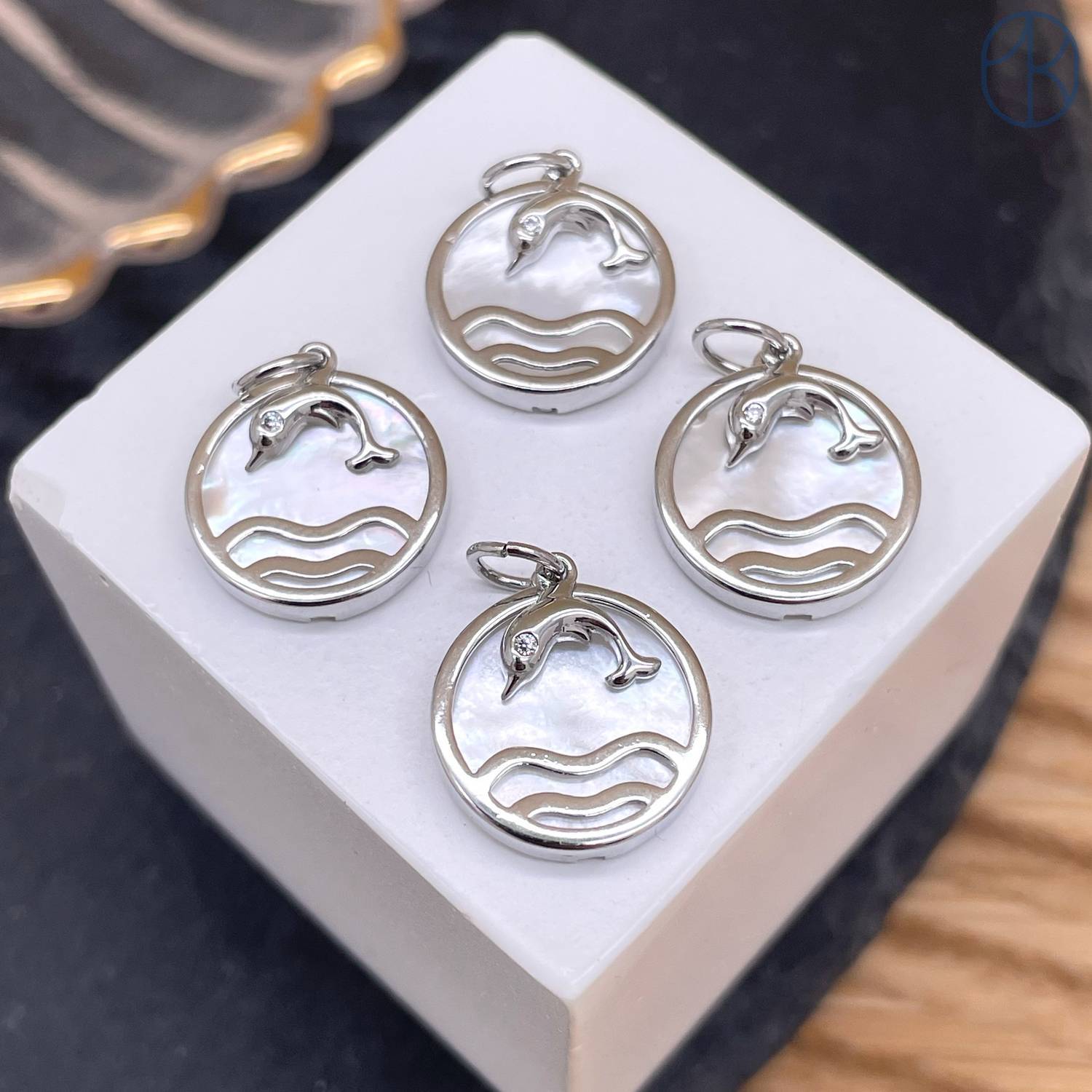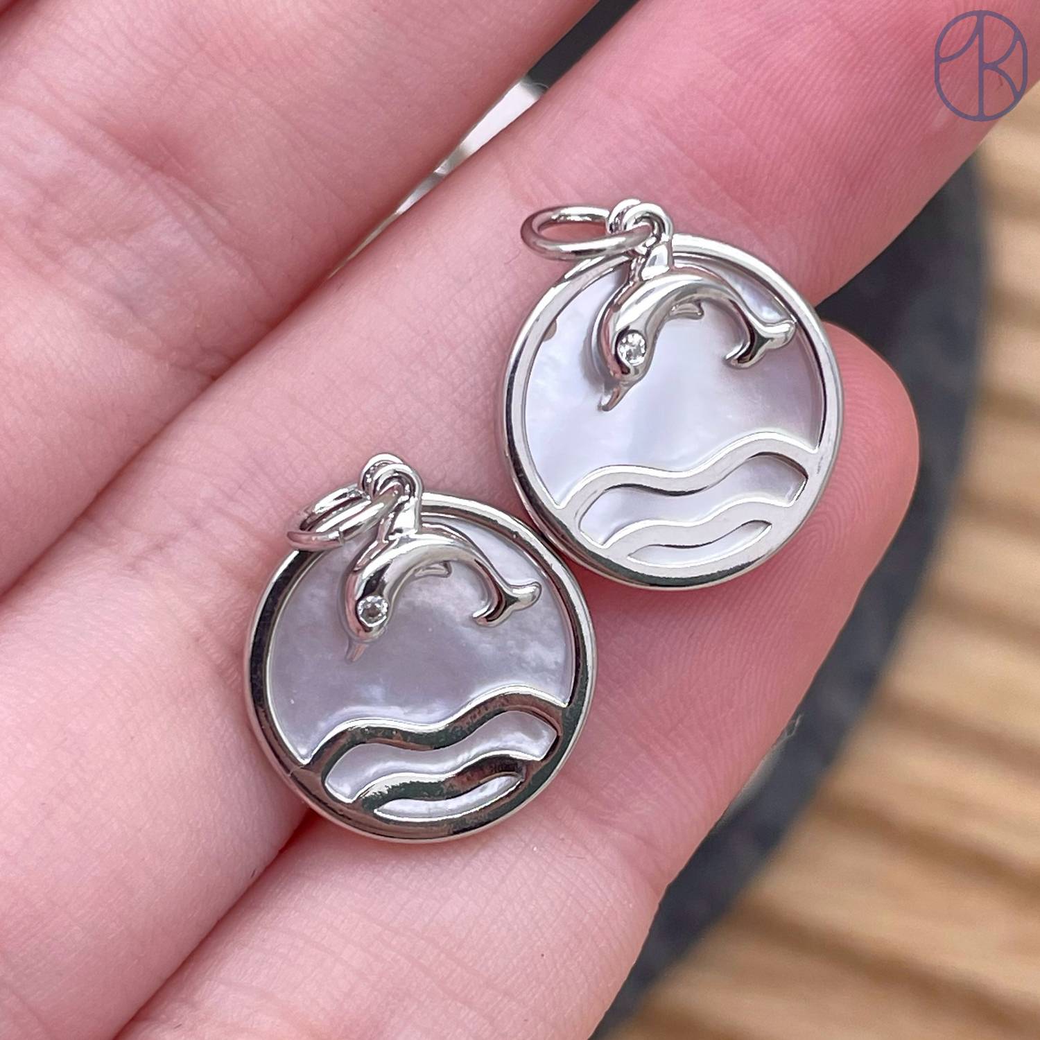 Подвеска дельфин перламутр, цвет серебро 13 мм