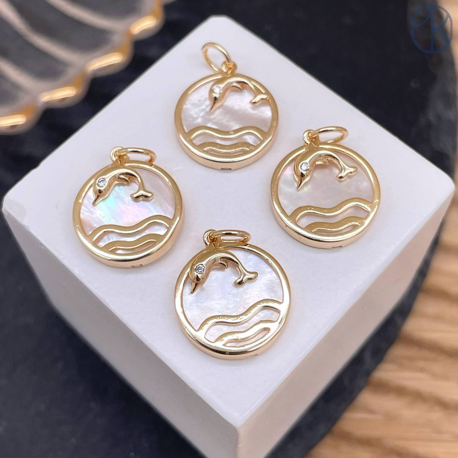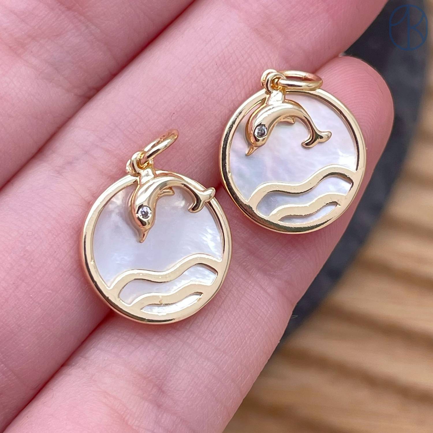 Подвеска дельфин перламутр, цвет золото 13 мм