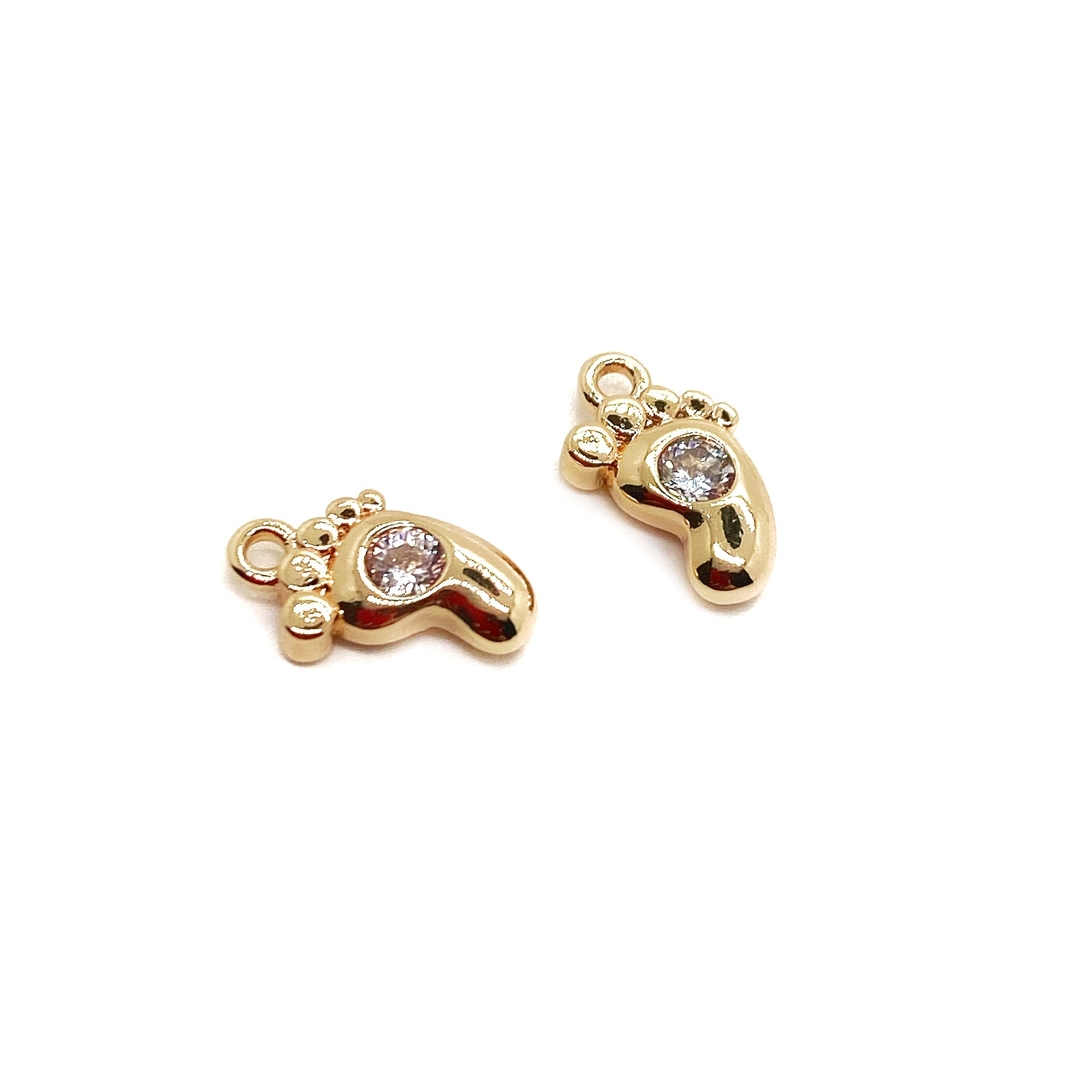 Подвеска детская ножка циркон, цвет золото 10х6 мм