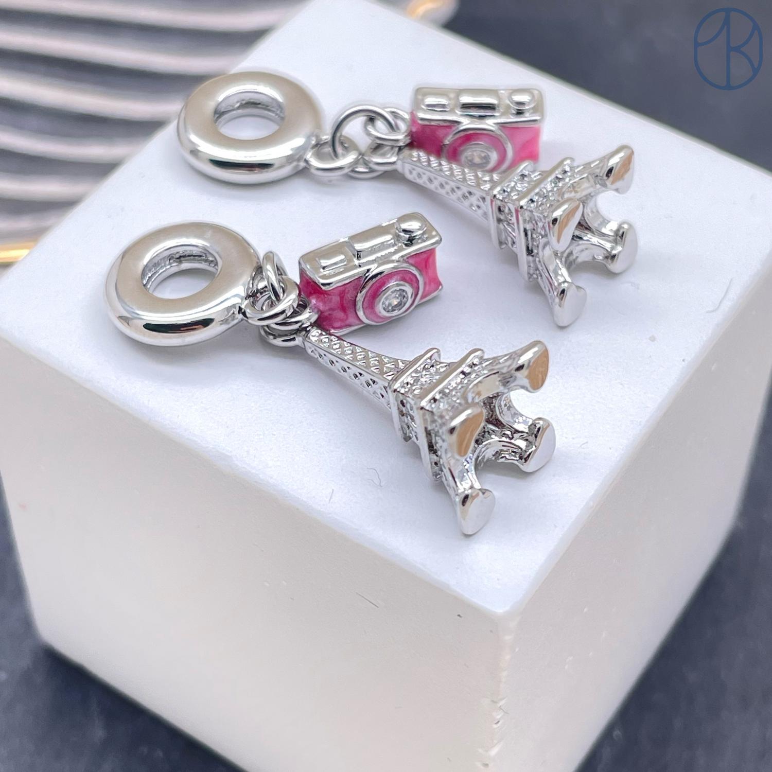 Подвеска фотоаппарат, эйфелева башня, цвет серебро 18 мм