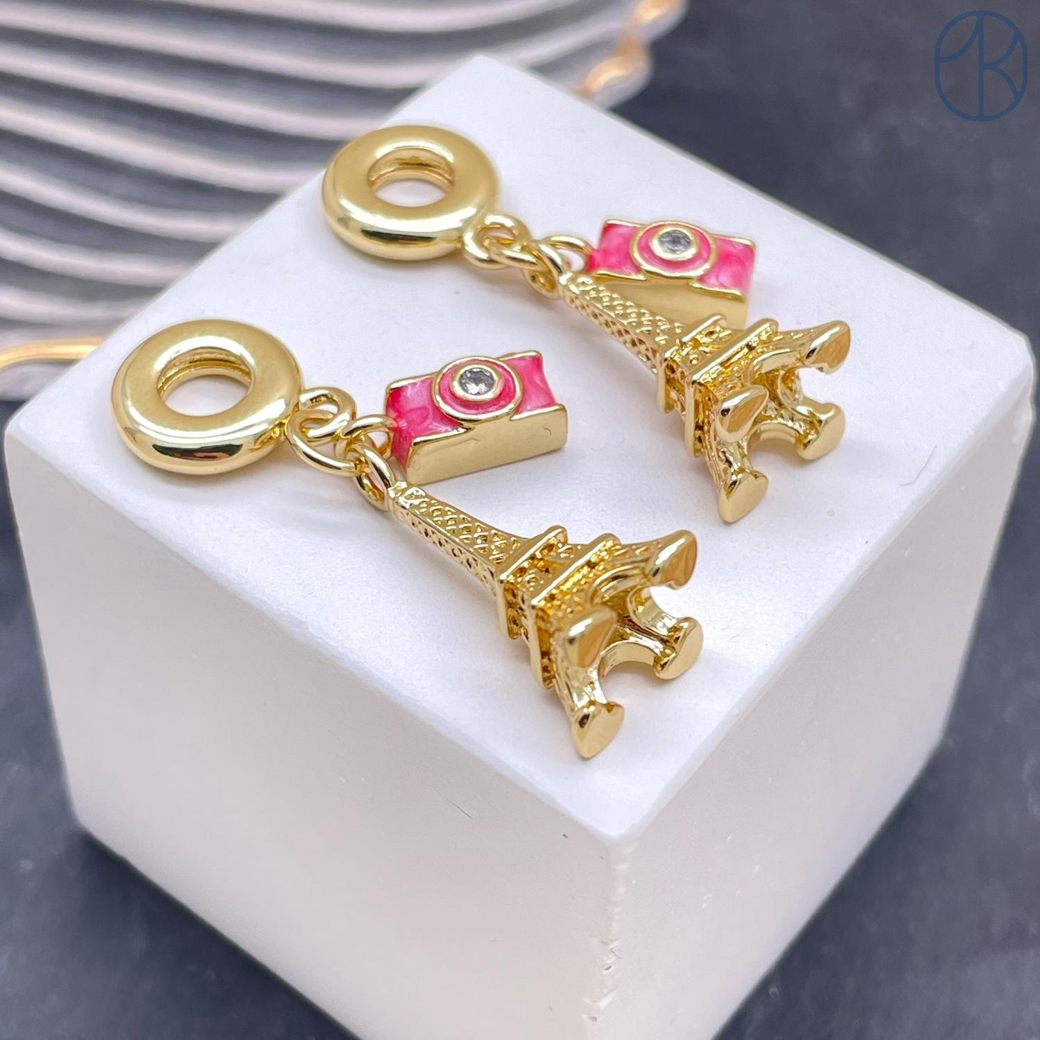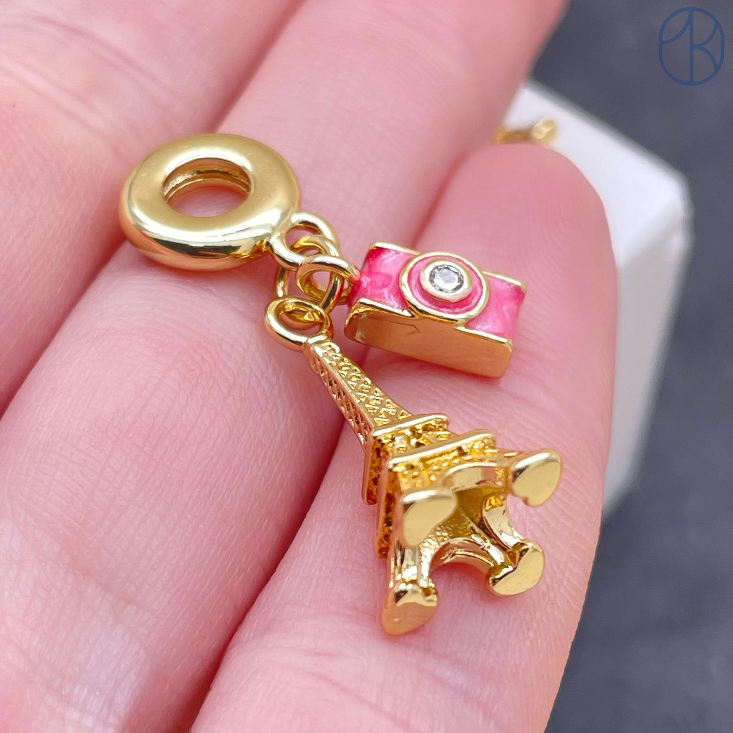 Подвеска фотоаппарат, эйфелева башня, цвет золото 18 мм