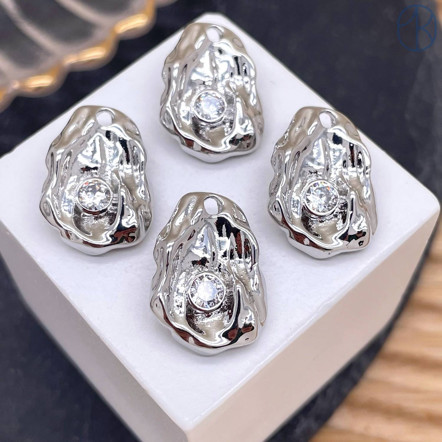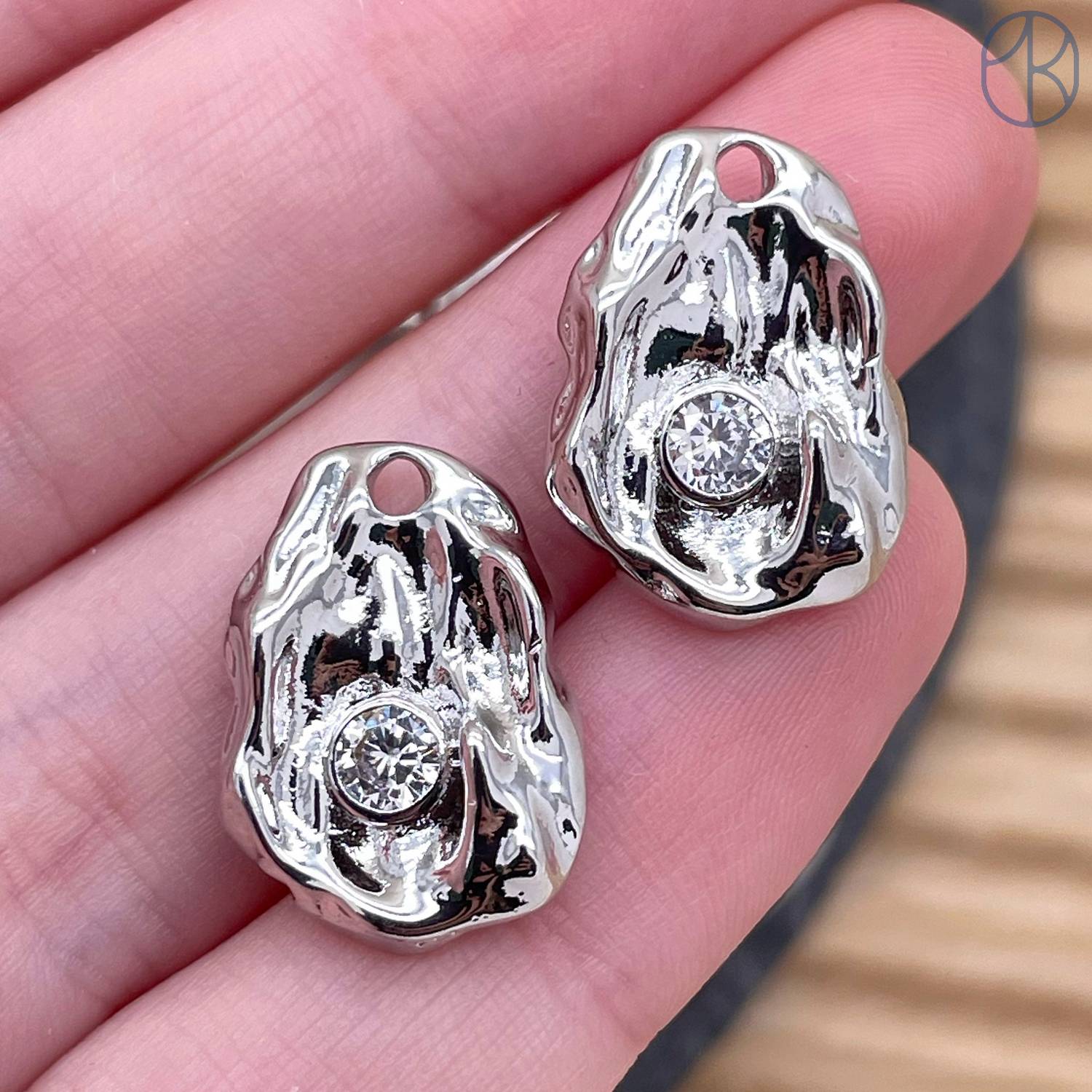 Подвеска фриформ циркон, цвет серебро 17 мм