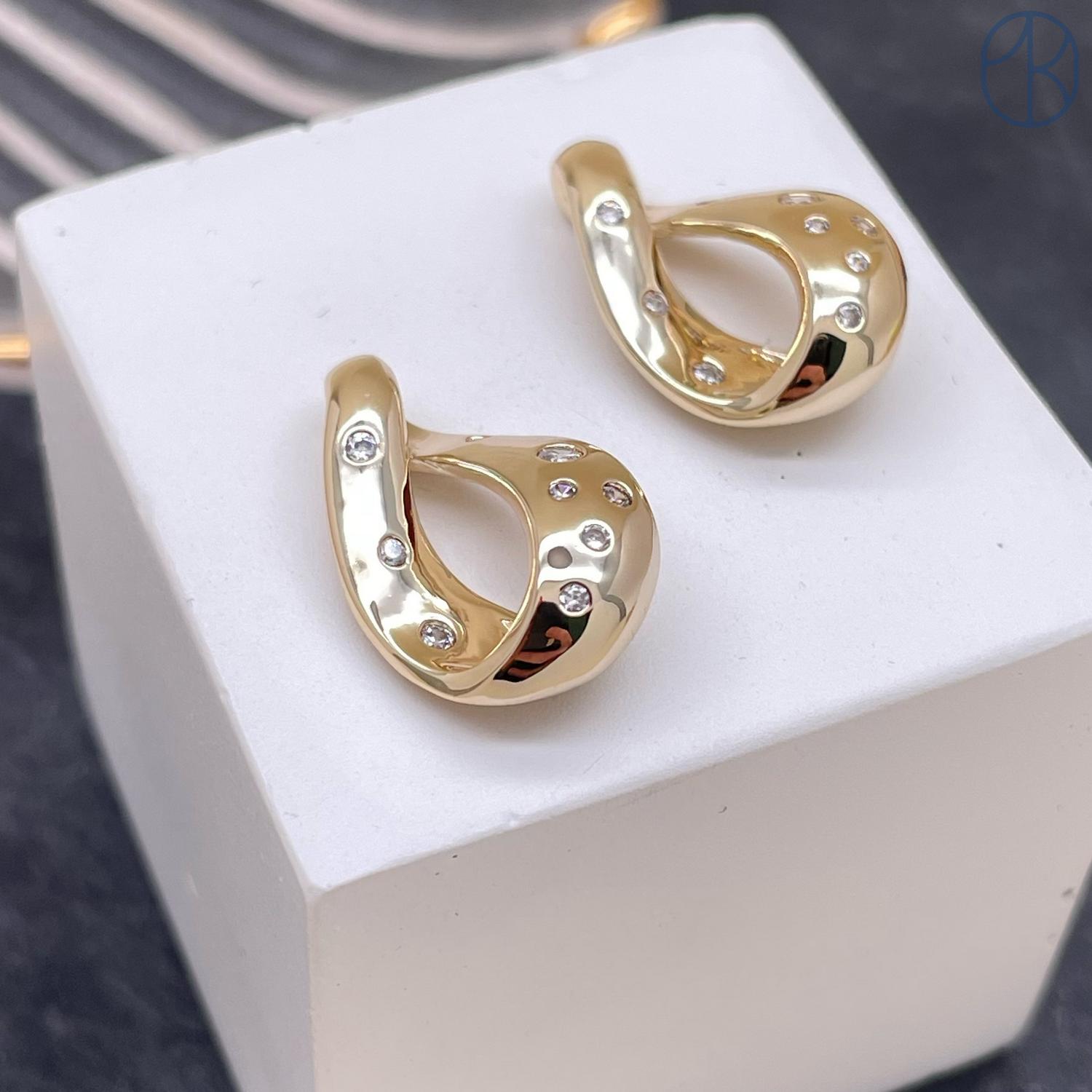 Подвеска фриформ цирконы, цвет золото 19х12 мм