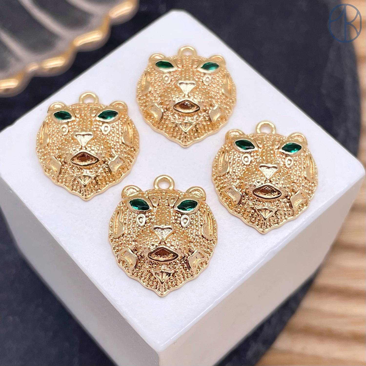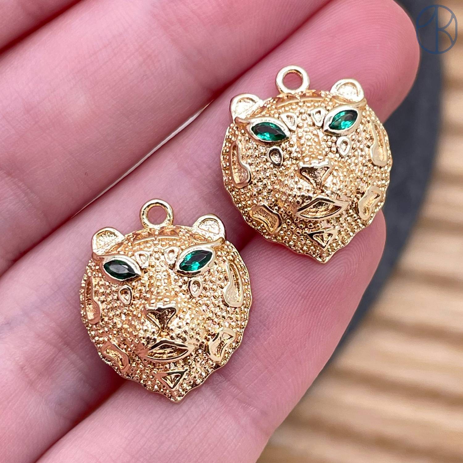 Подвеска гепард зеленые цирконы, цвет золото 18 мм