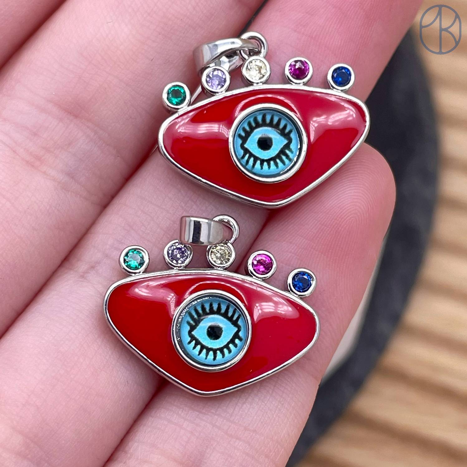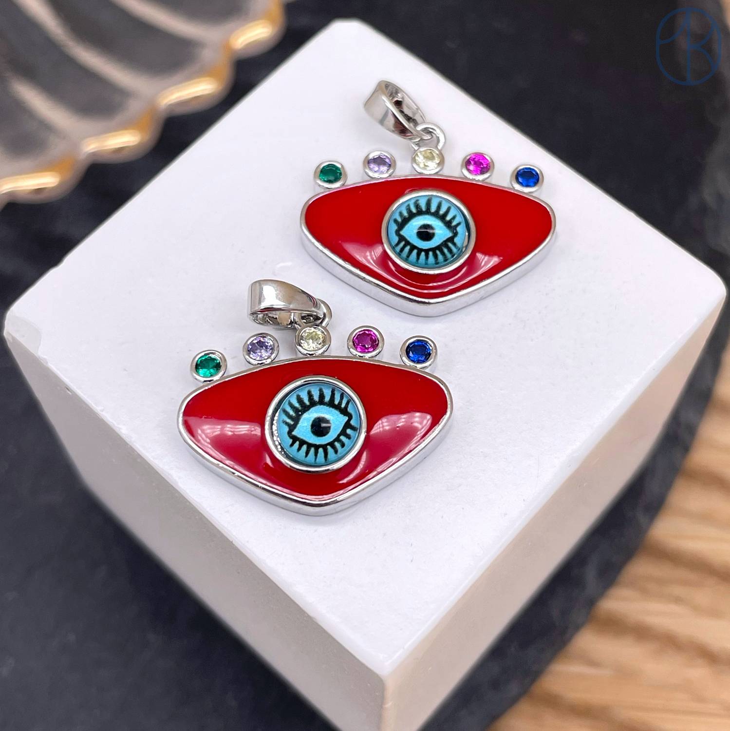 Подвеска глаз красная эмаль и цирконы микс, цвет серебро 19х14 мм