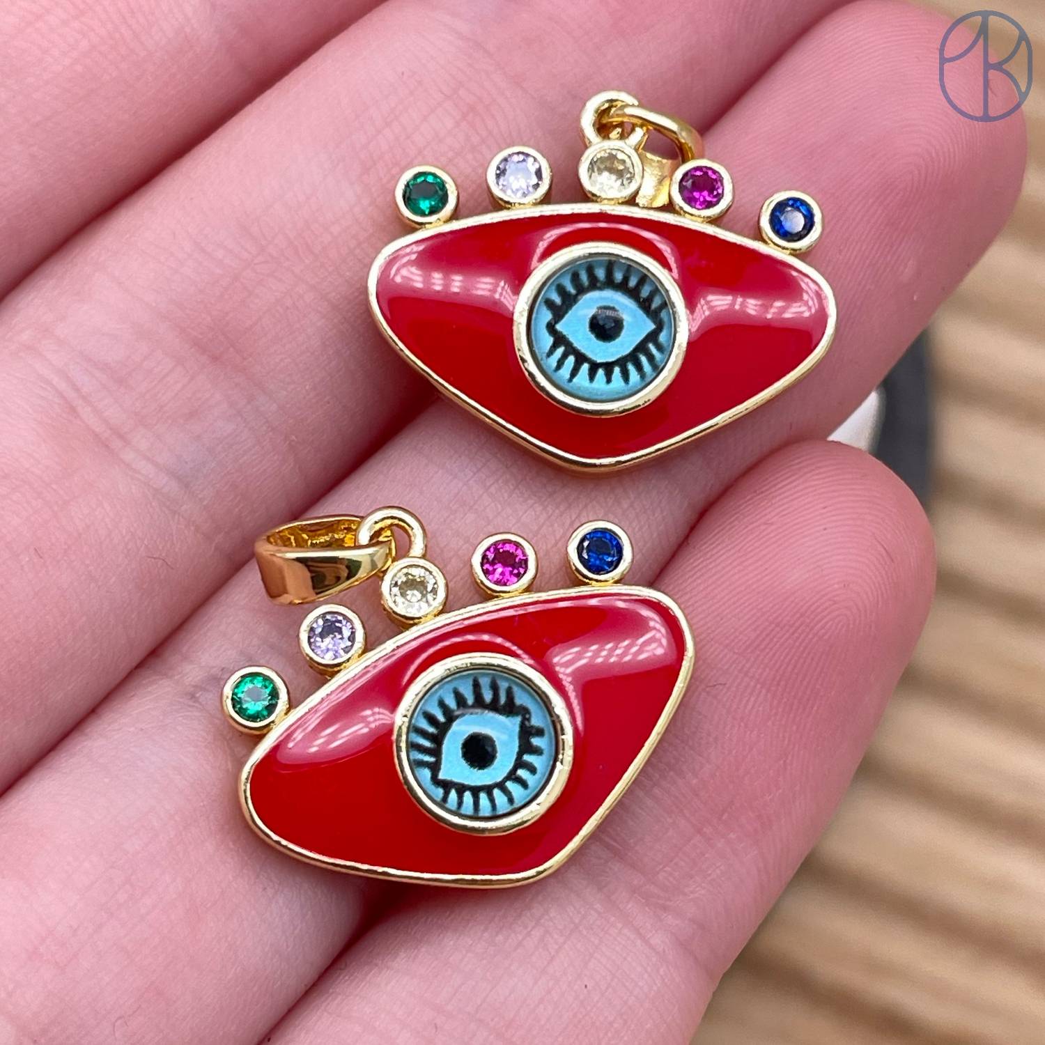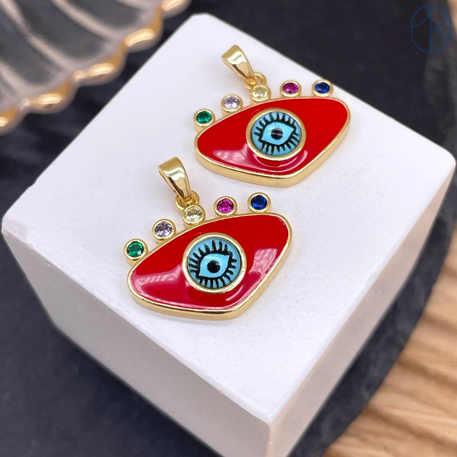 Подвеска глаз красная эмаль и цирконы микс, цвет золото 19х14 мм