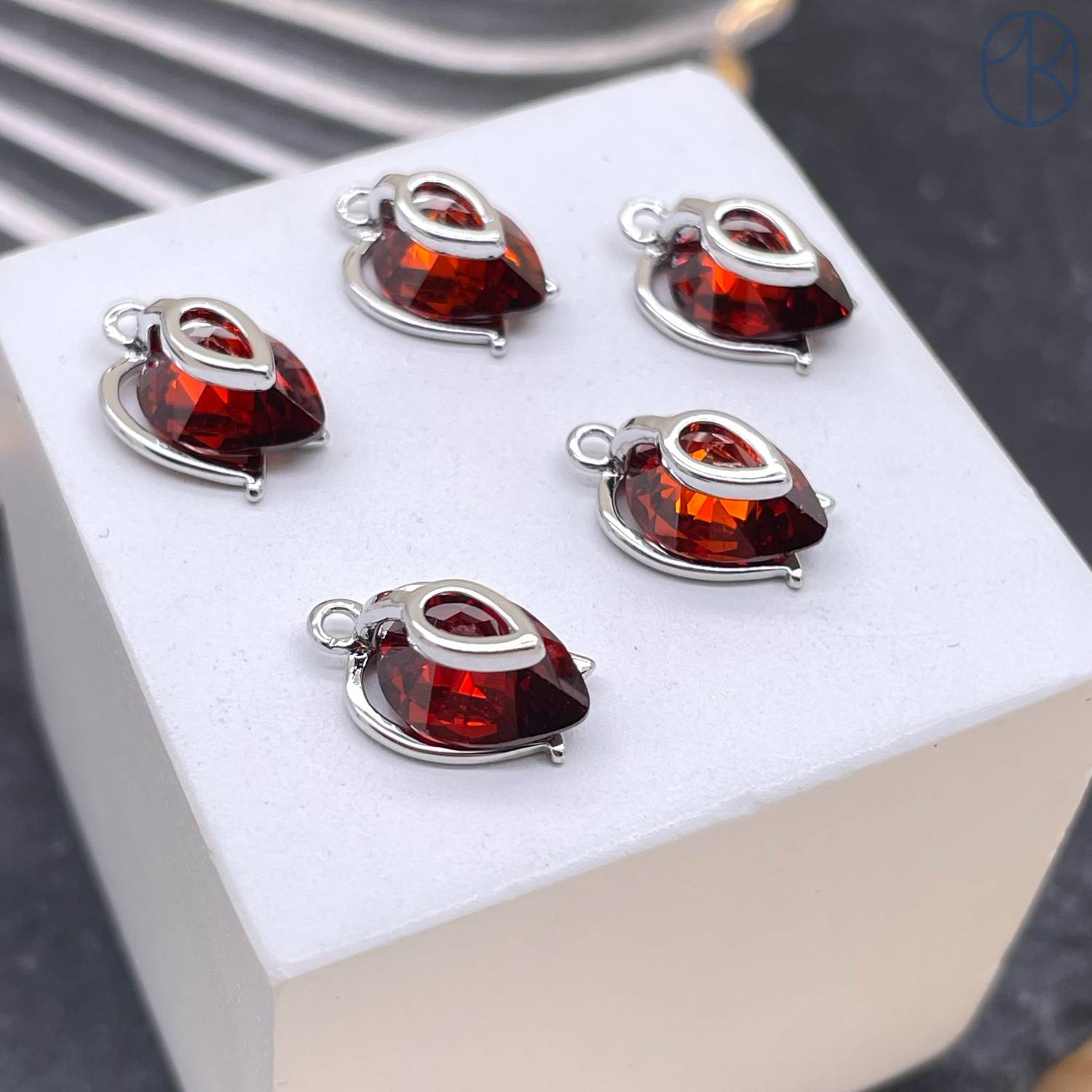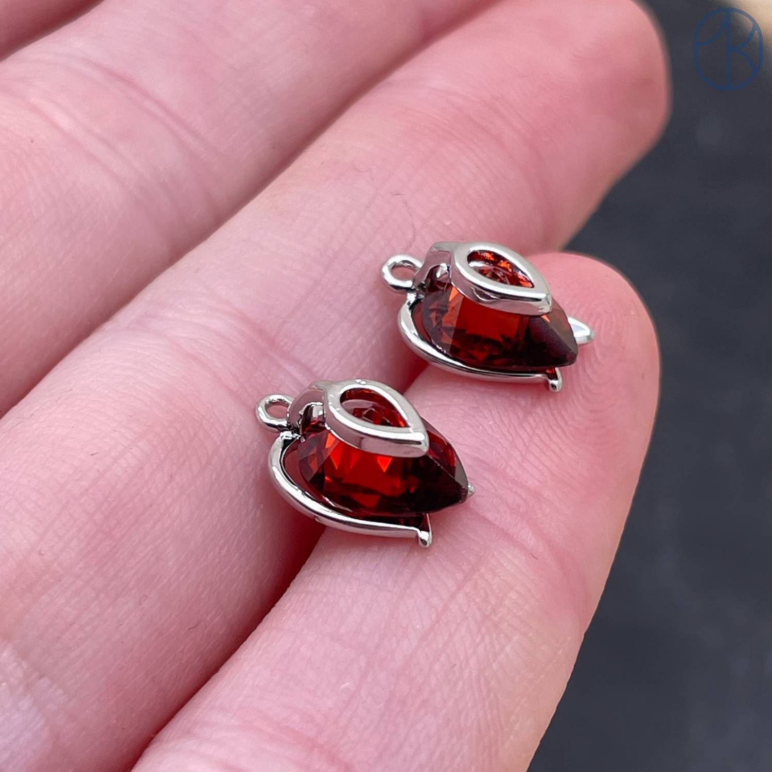 Подвеска капля красный циркон, цвет серебро 10 мм