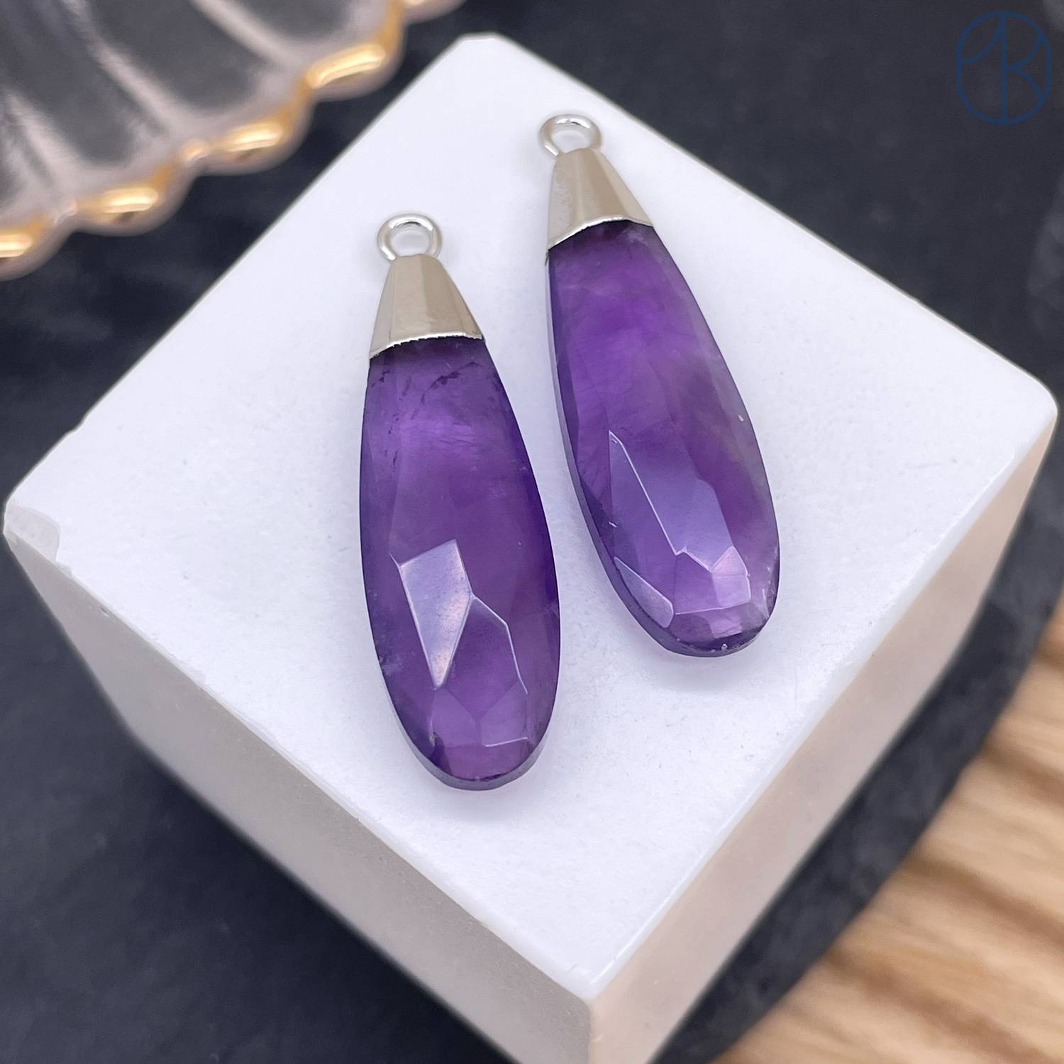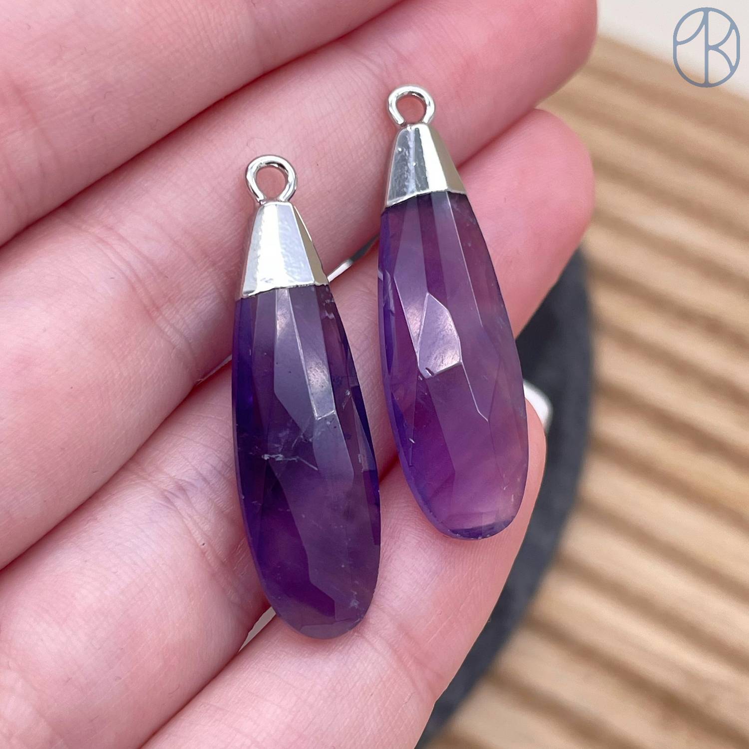 Подвеска капля огранка аметист, цвет серебро 30х9 мм
