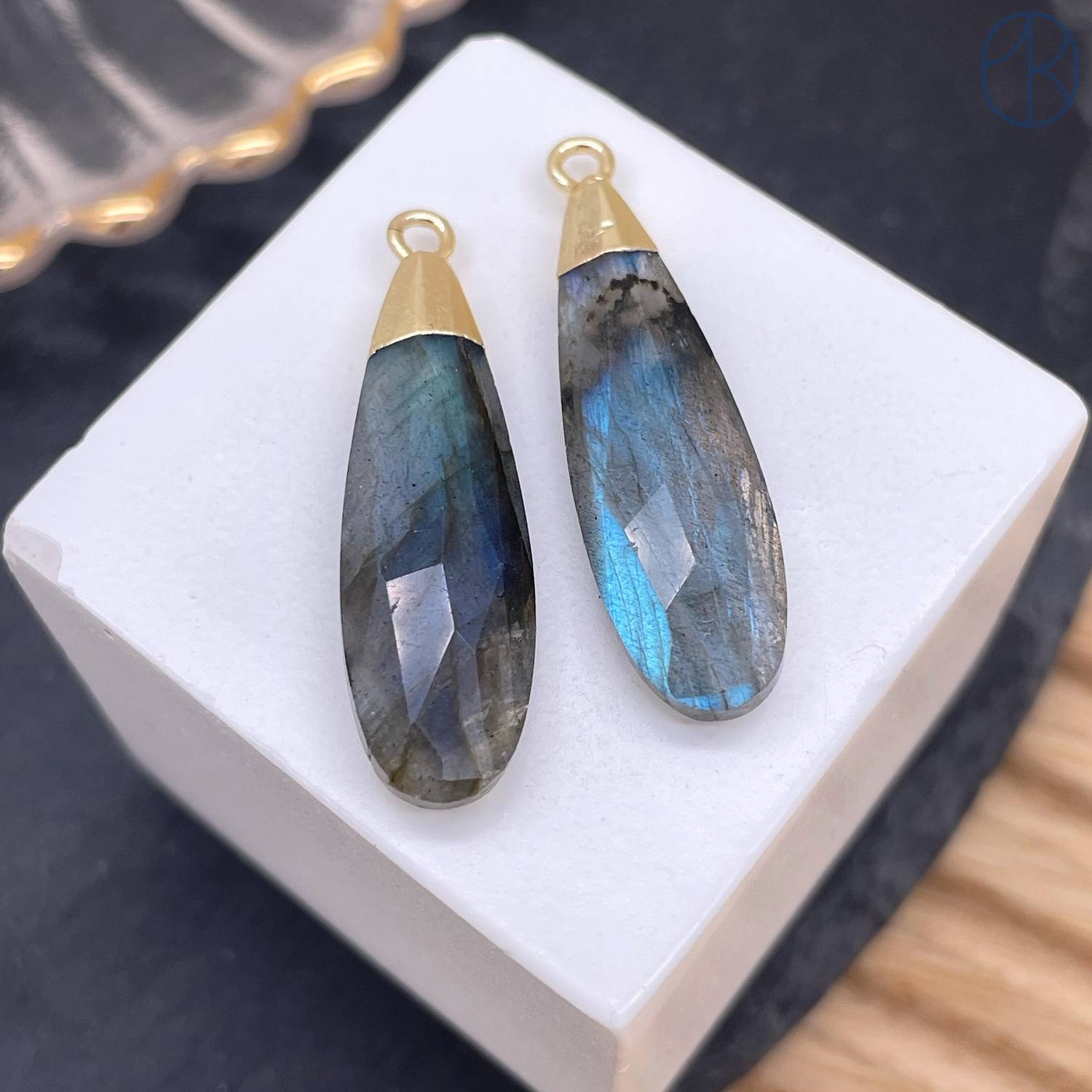 Подвеска капля огранка лабрадор, цвет золото 30х9 мм