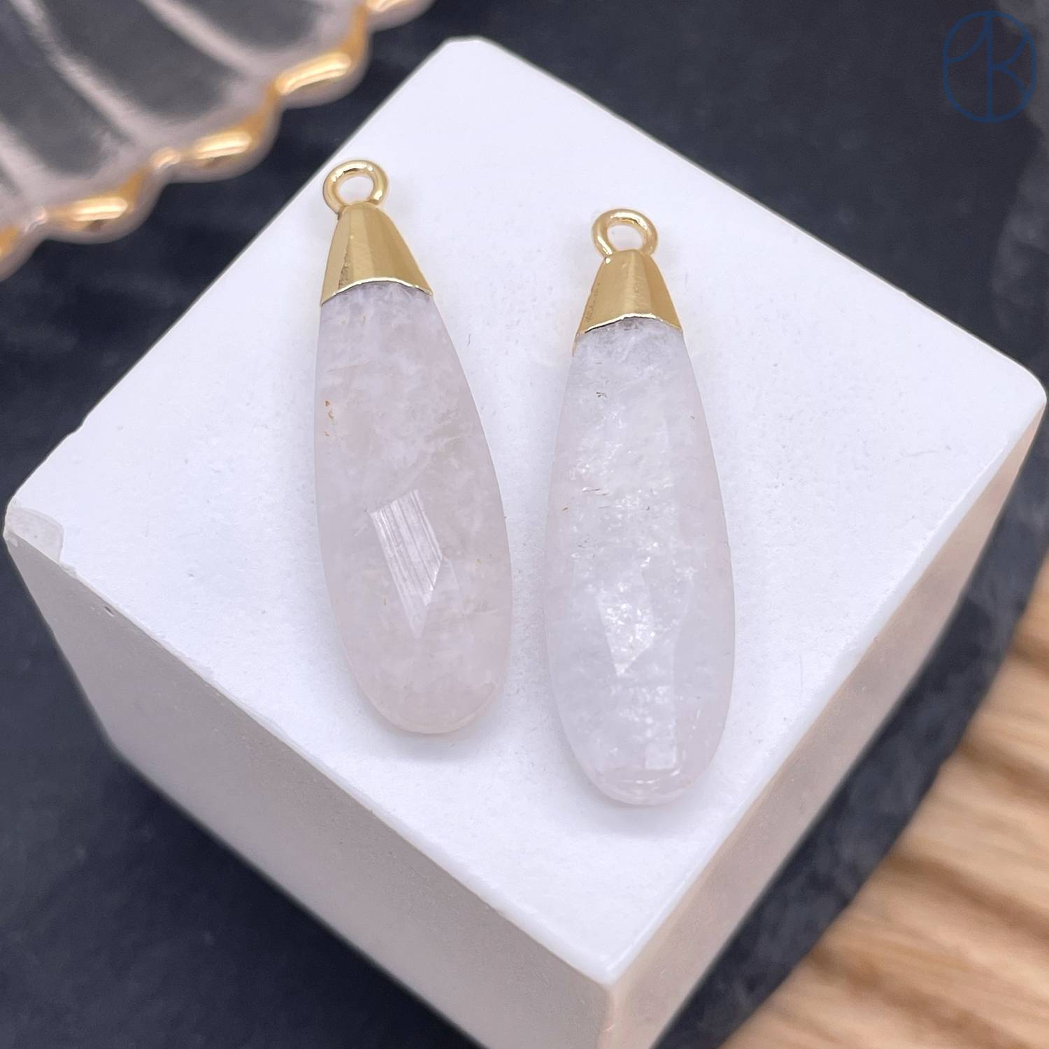 Подвеска капля огранка лунный камень, цвет золото 30х9 мм