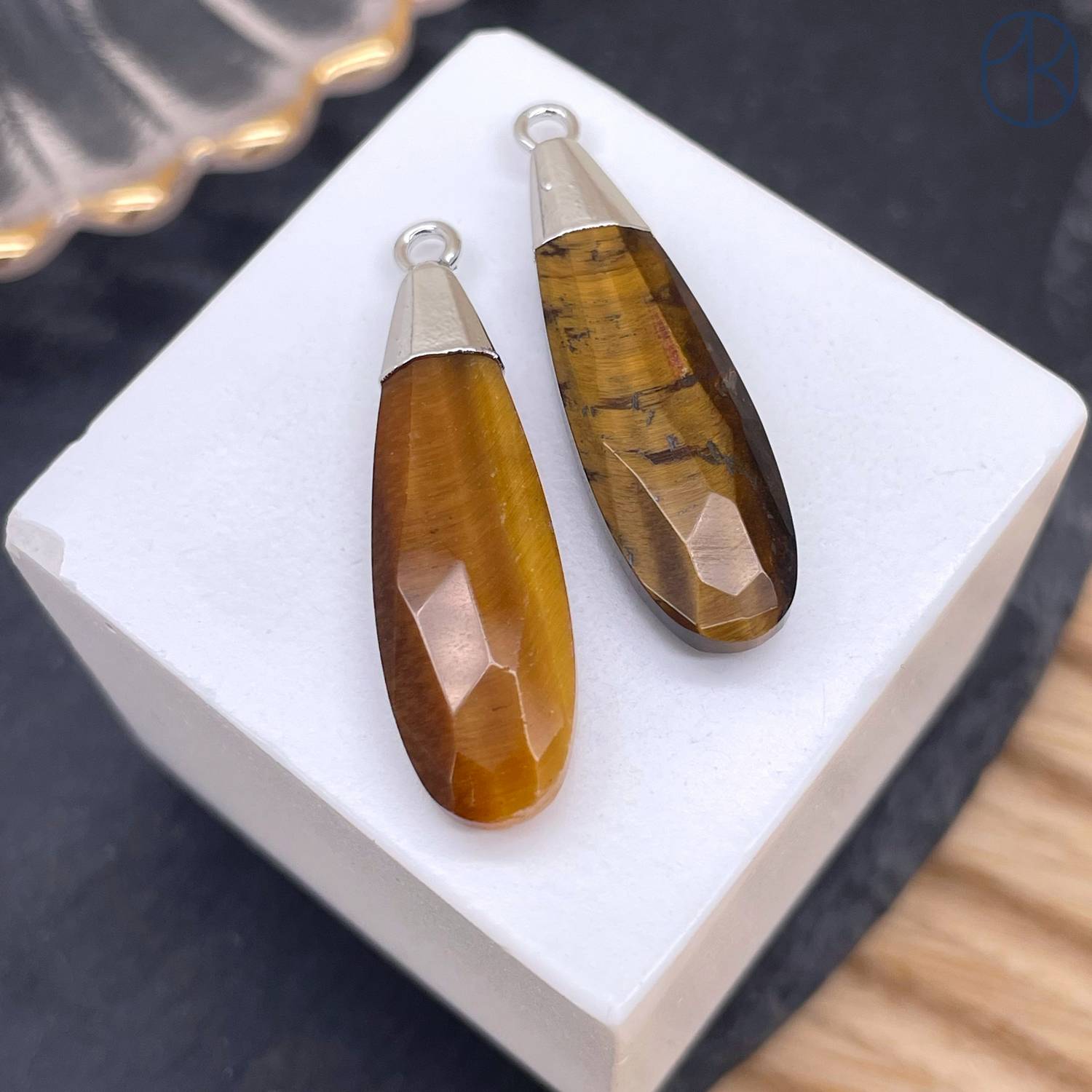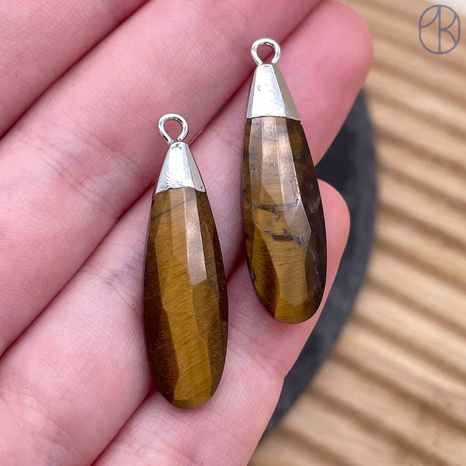 Подвеска капля огранка тигровый глаз, цвет серебро 30х9 мм