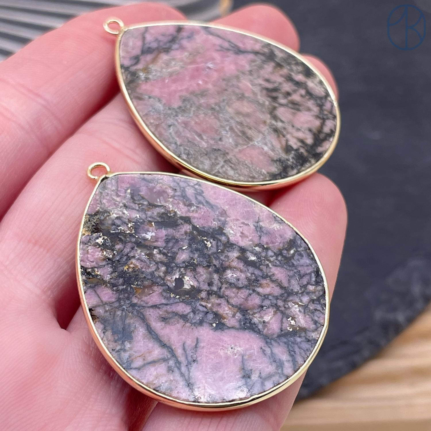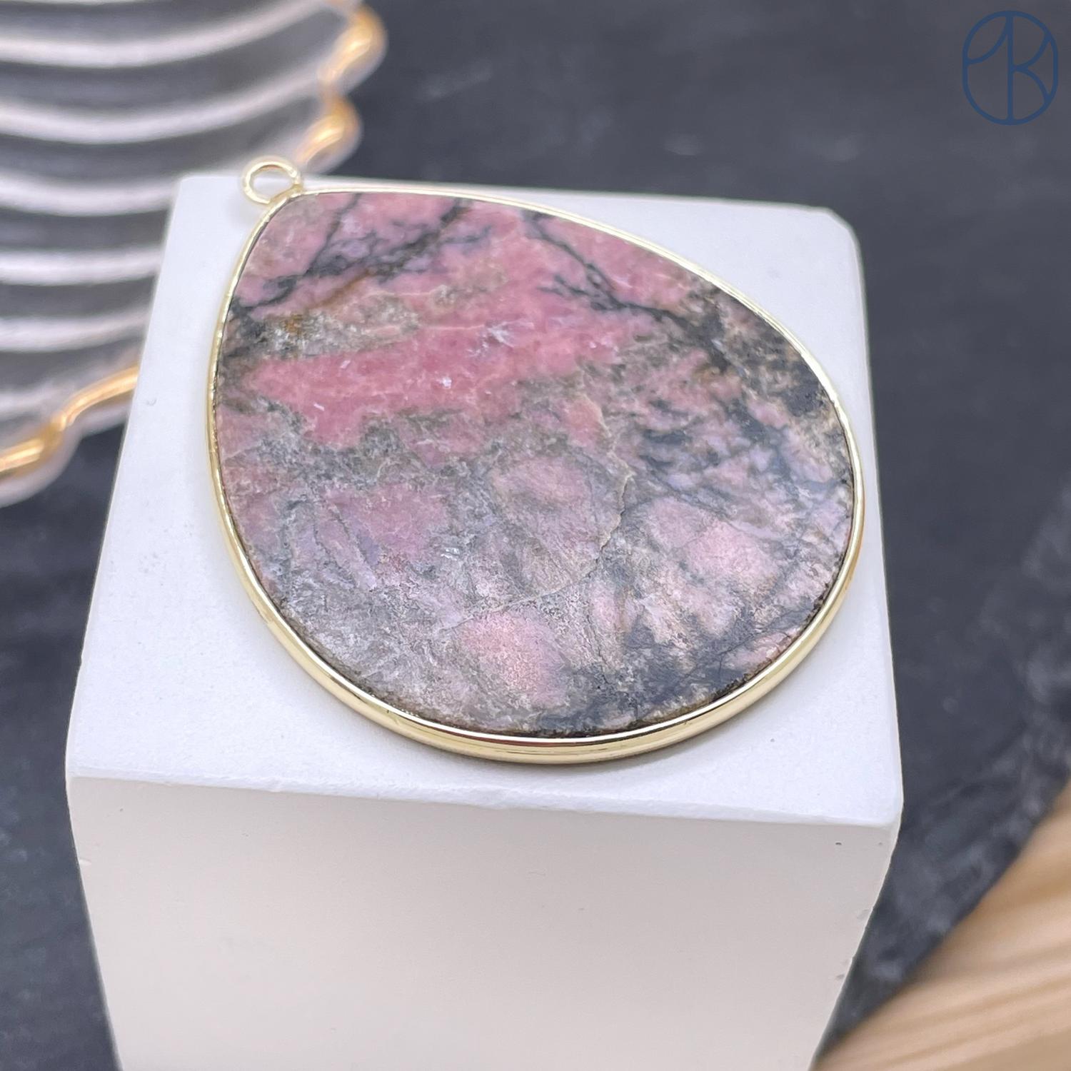 Подвеска капля родонит черно-розовый, цвет золото 40х34 мм