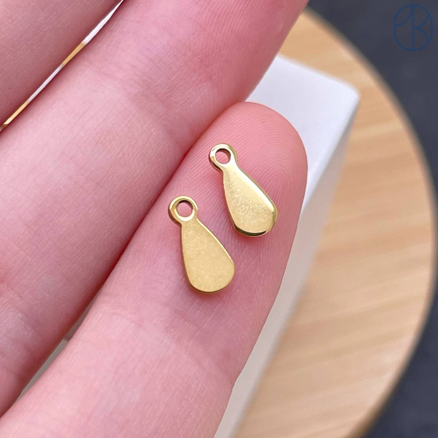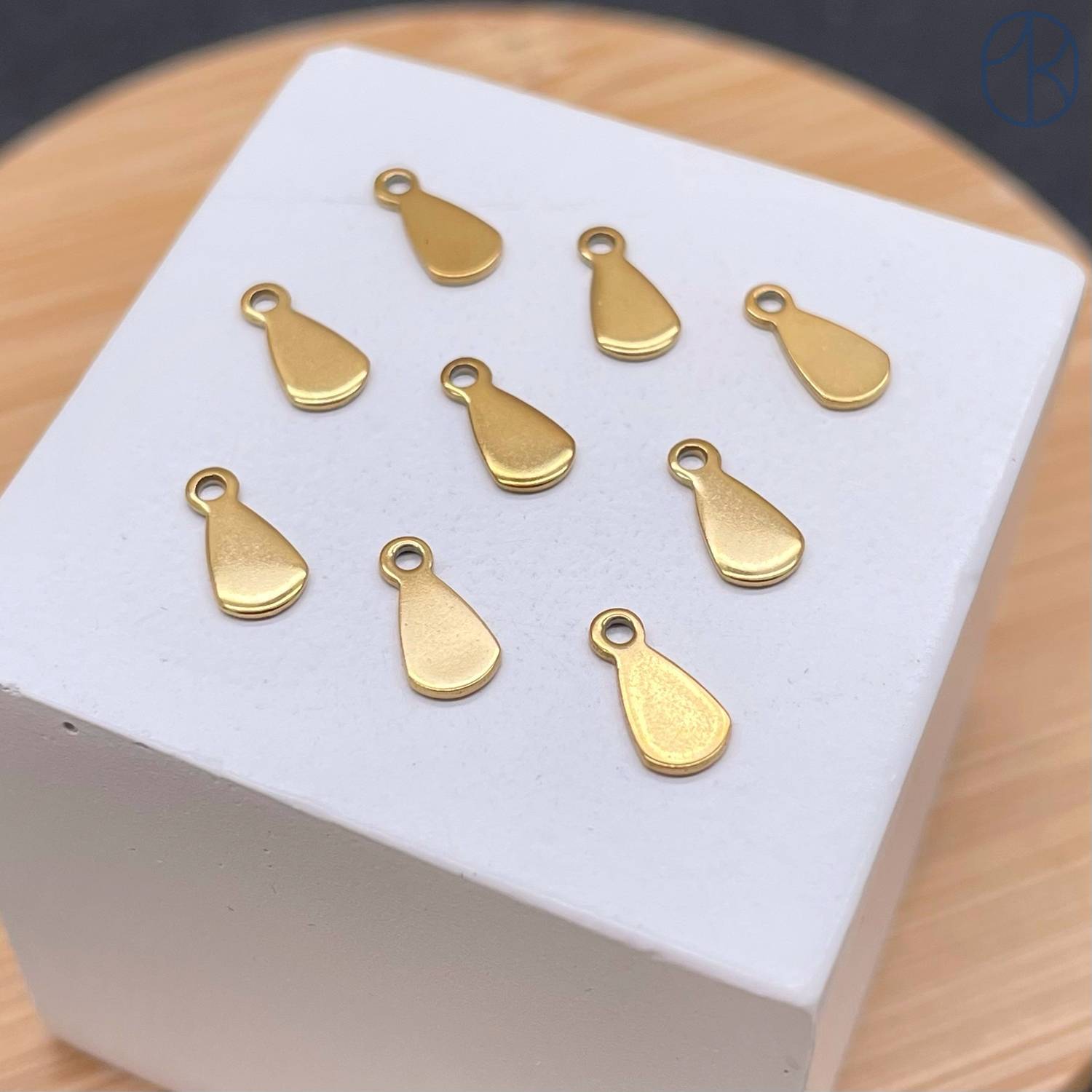 Подвеска капля сталь 4х8 мм, цвет золото 18К