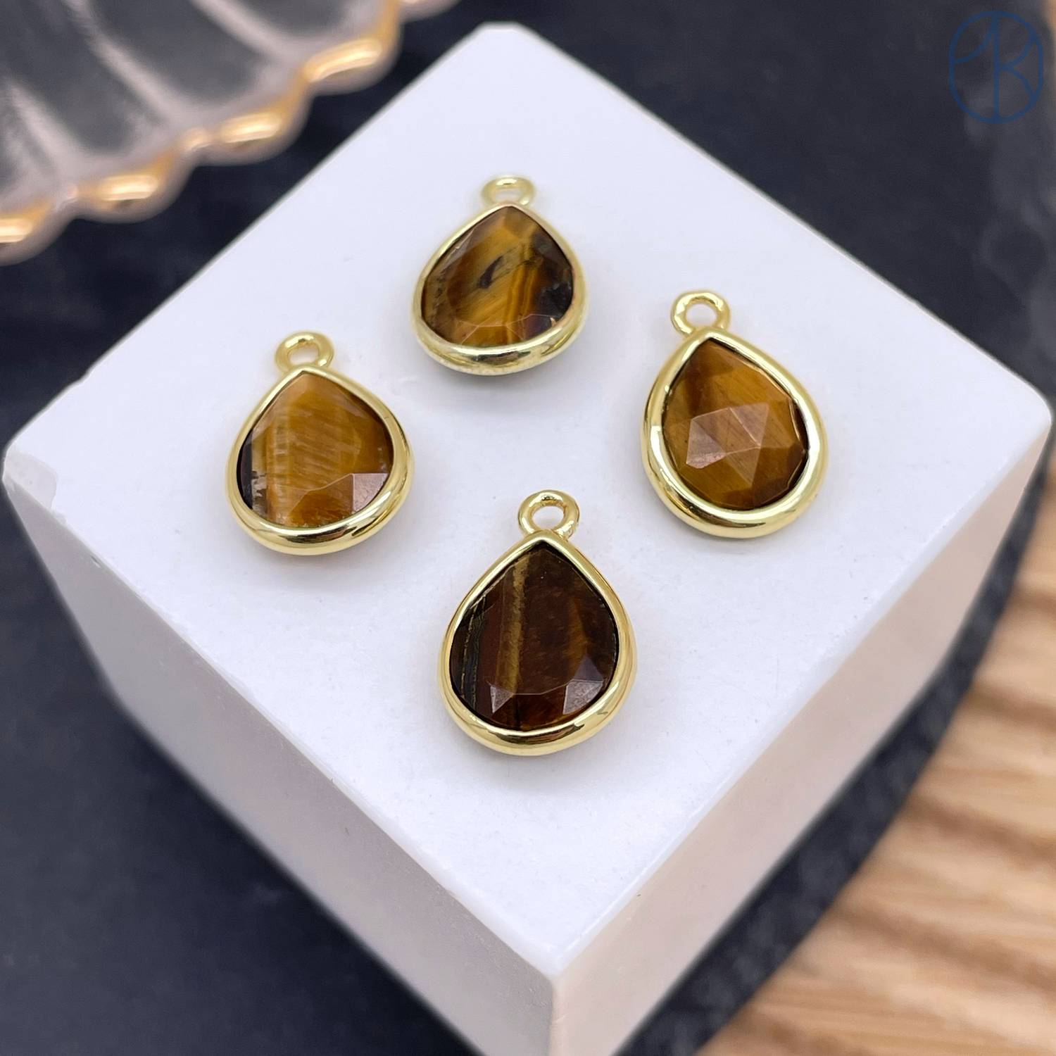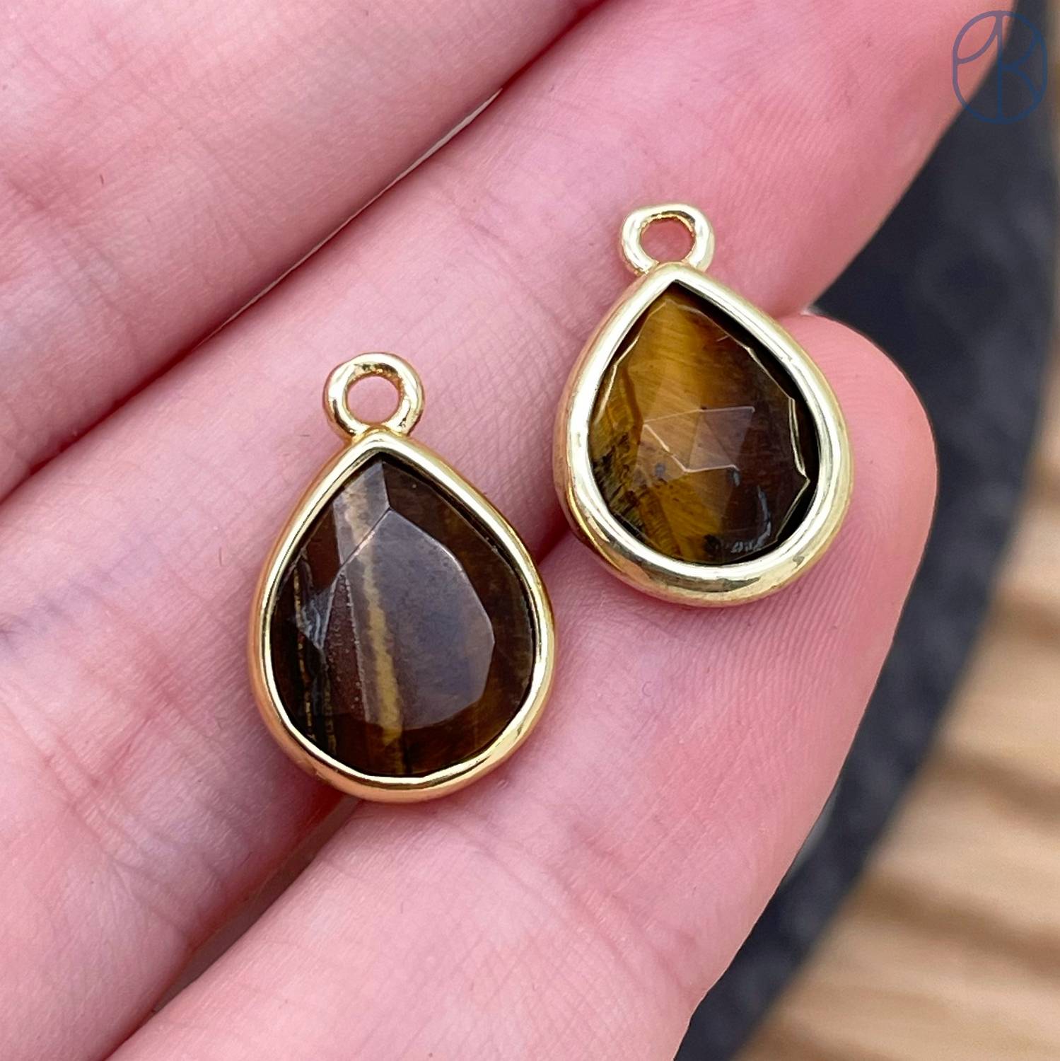 Подвеска капля тигровый глаз, цвет золото 11 мм