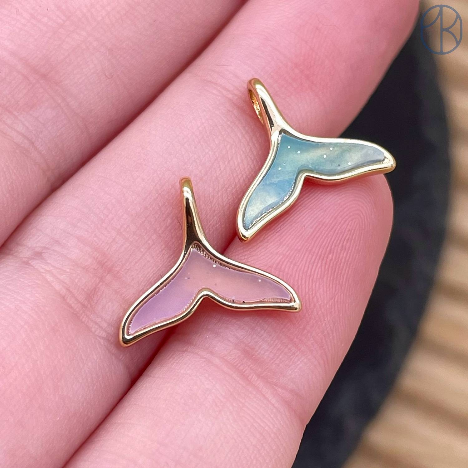 Подвеска хвост кита микс эмаль, цвет золото 12 мм