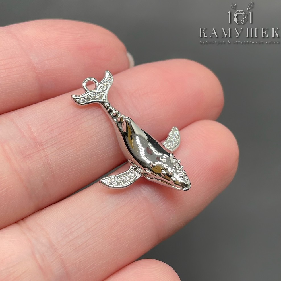 Подвеска Кит с цирконами, цвет серебро 18х25 мм