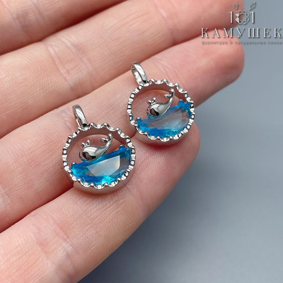 Подвеска Кит в океане ювелирное стекло цвет серебро 20*14, 5 мм