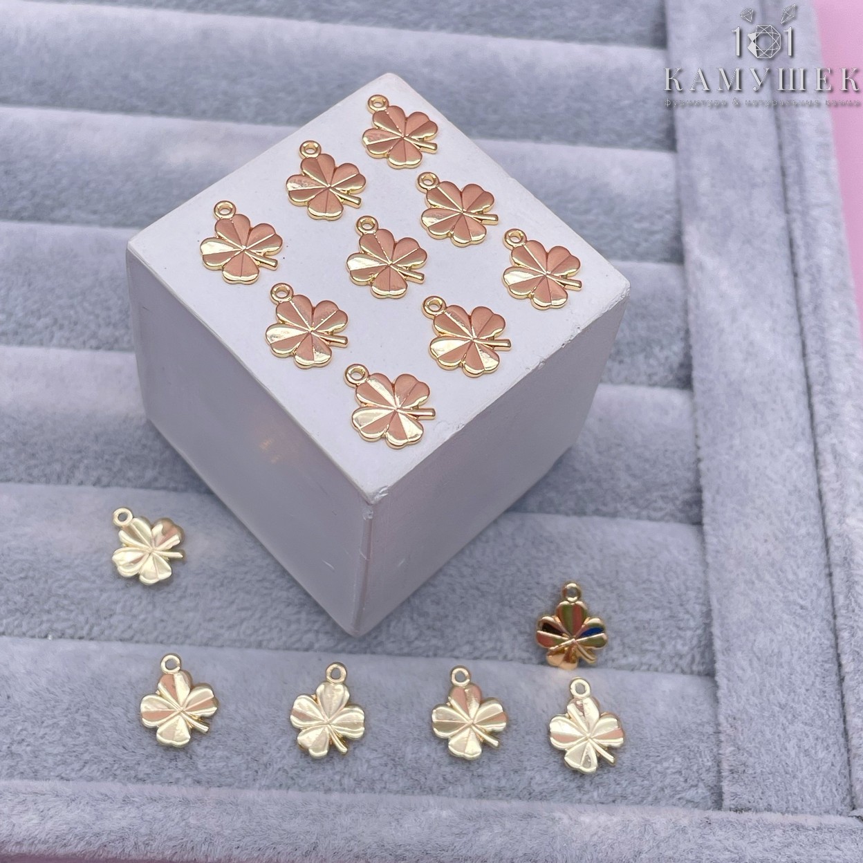 Подвеска Клевер 4-листный, цвет золото 11x9 мм