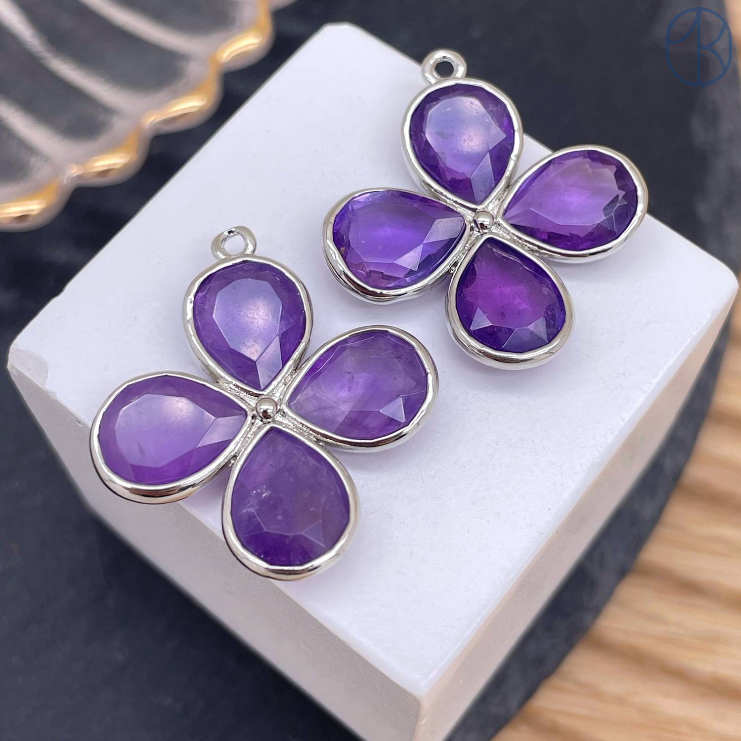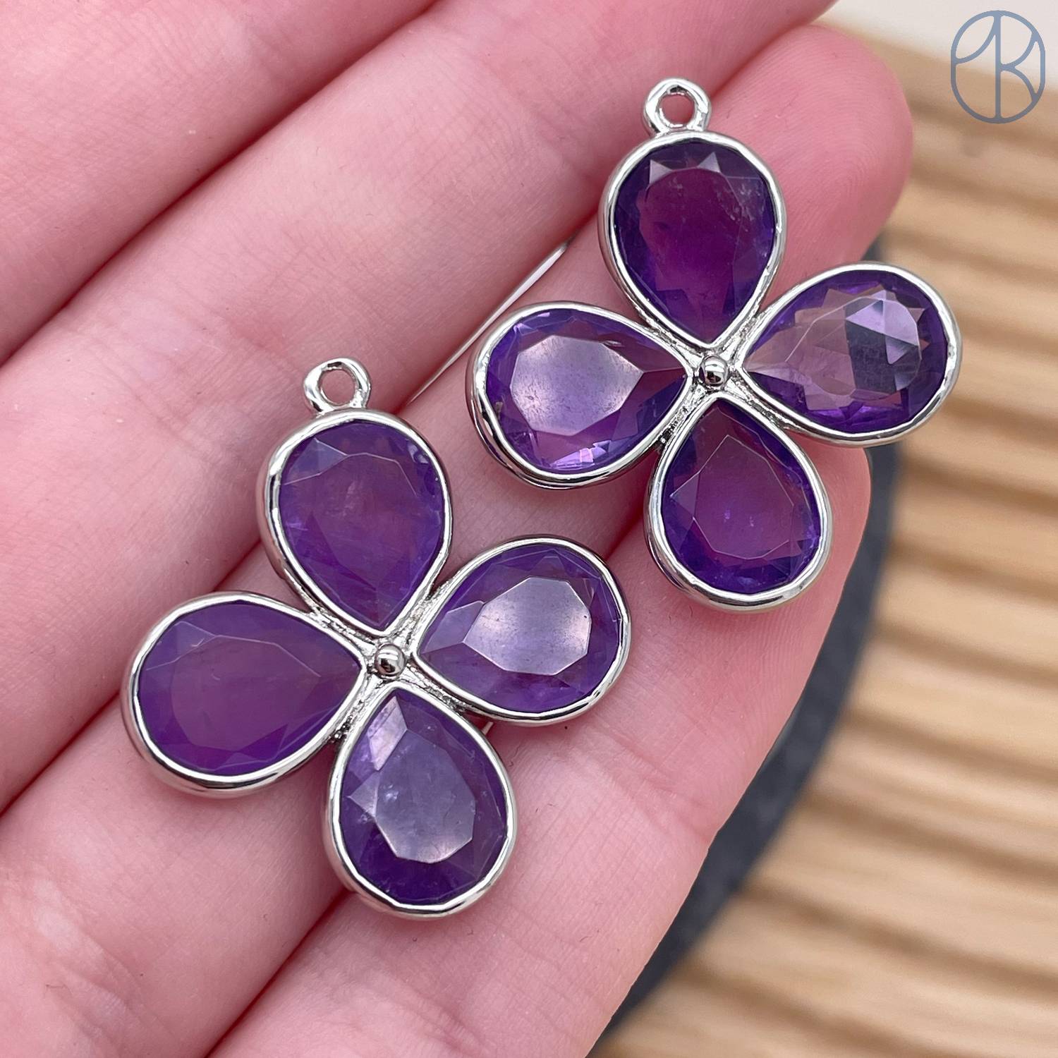 Подвеска клевер огранка аметист, цвет серебро 25 мм