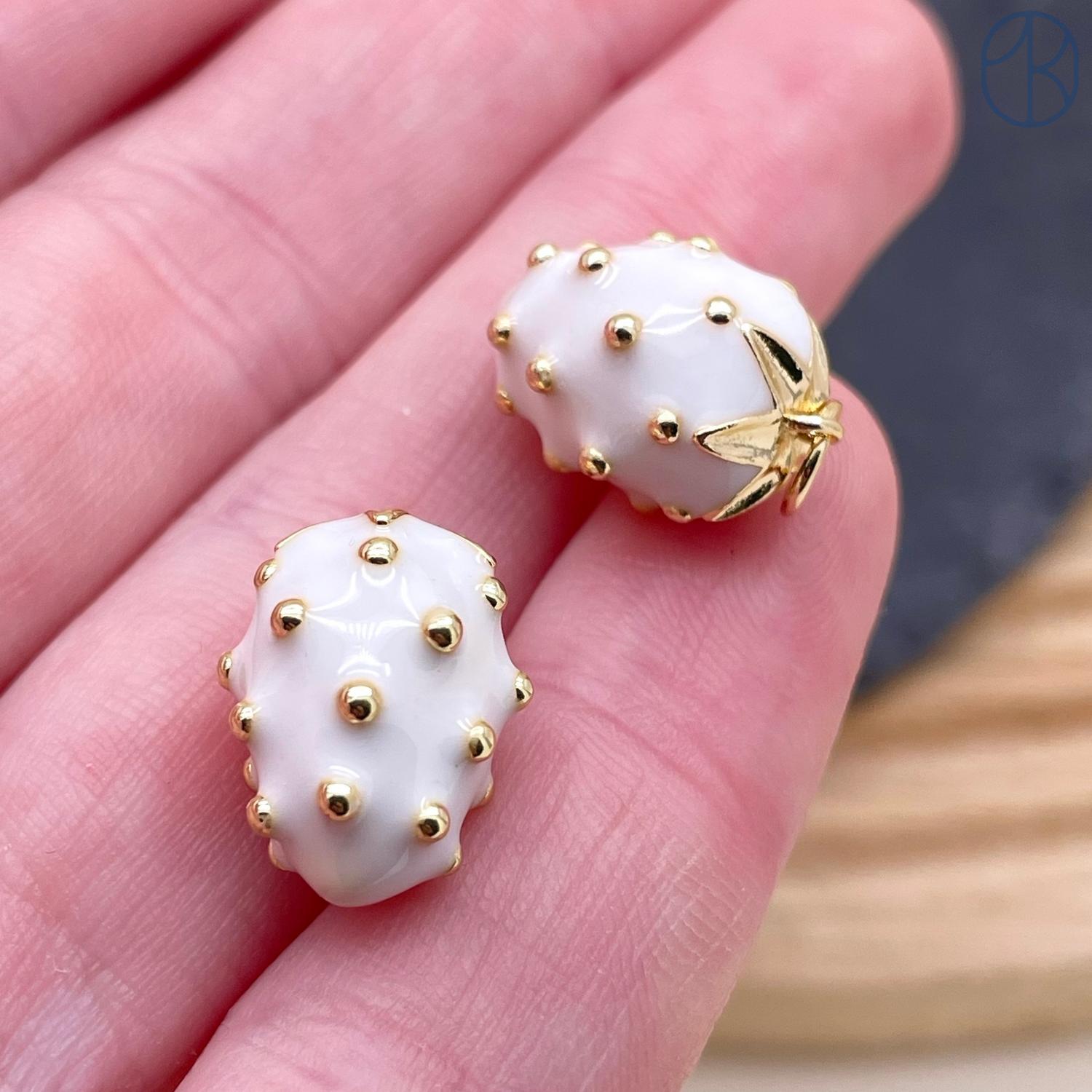Подвеска клубника белая, цвет серебро 17х12 мм