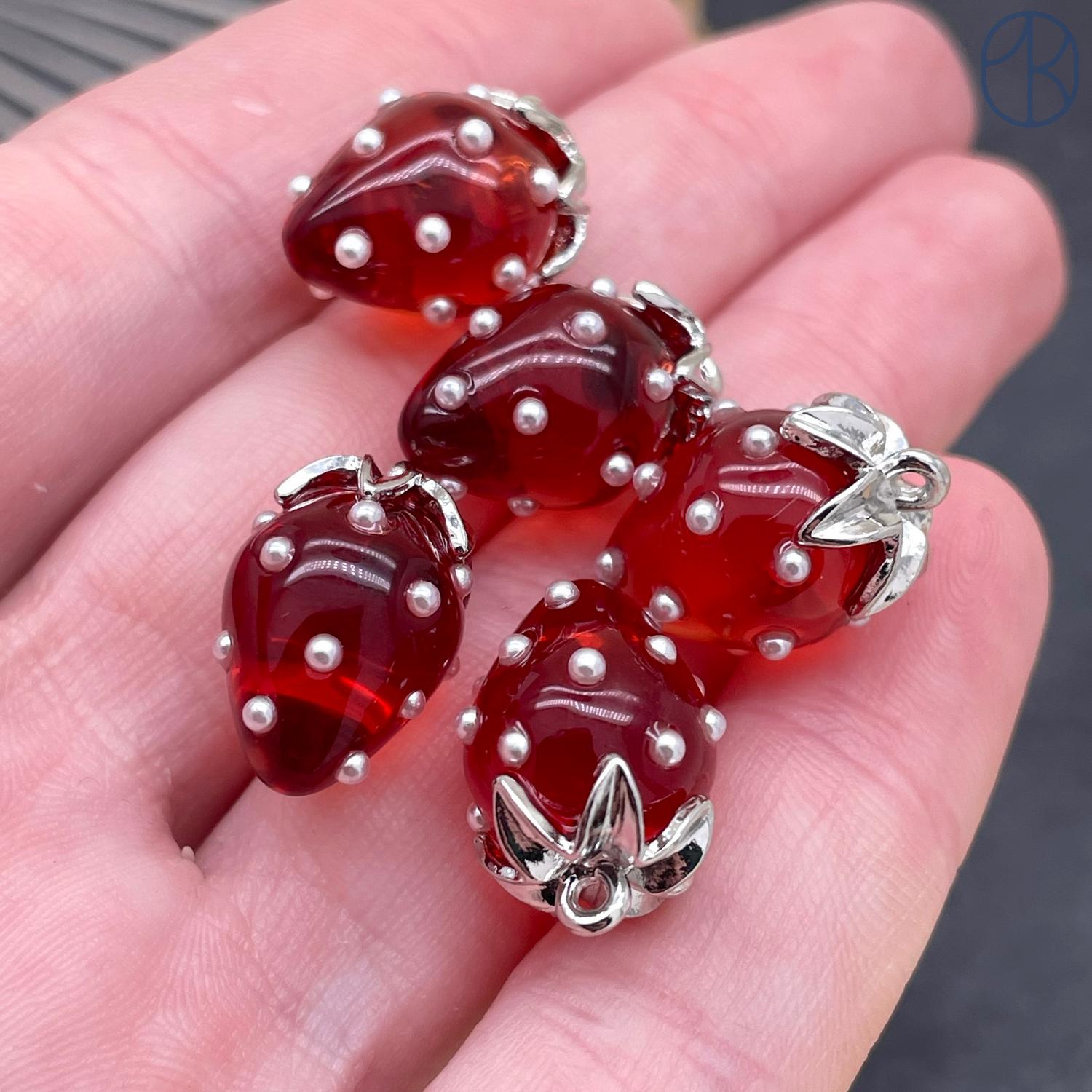 Подвеска клубника красная, цвет серебро 17х12 мм