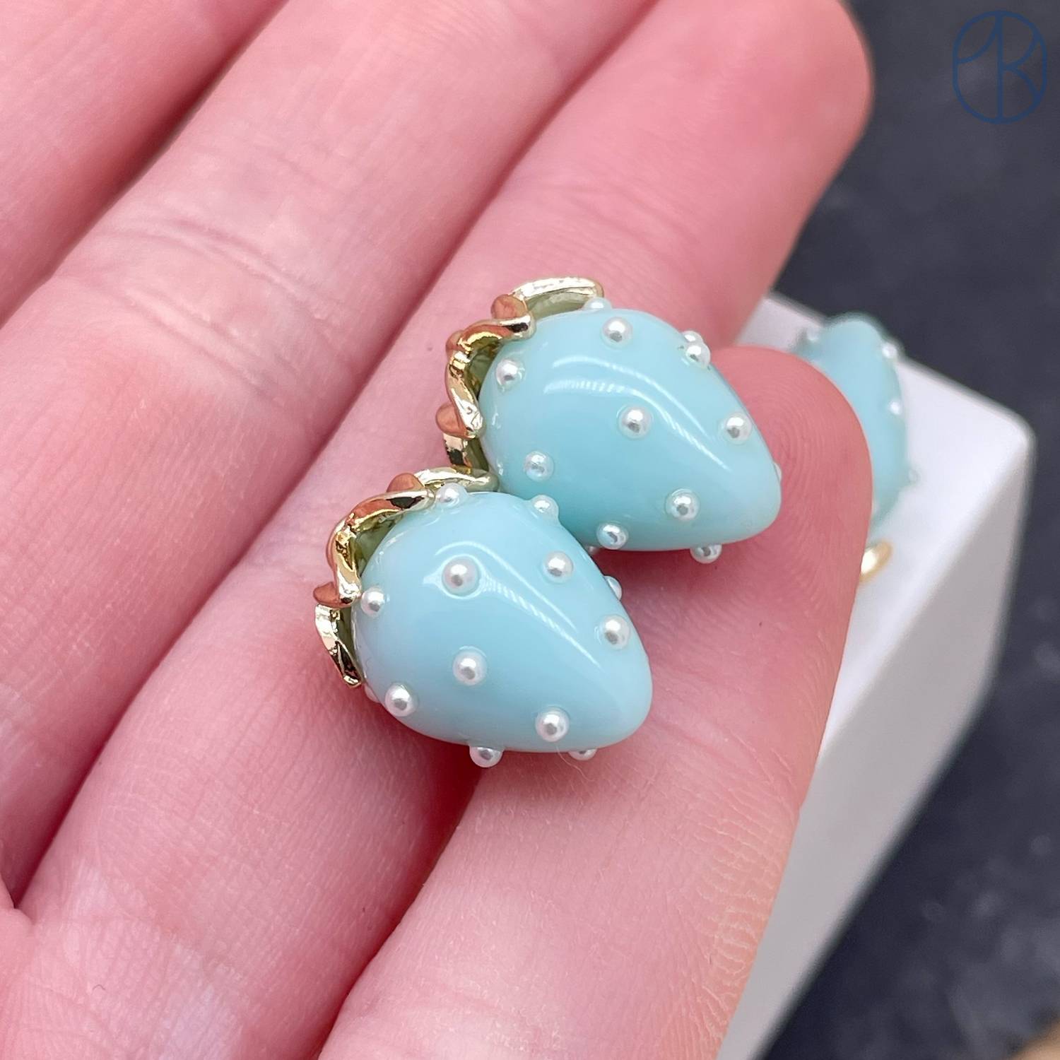 Подвеска клубника светло-голубая, цвет золото 17х12 мм