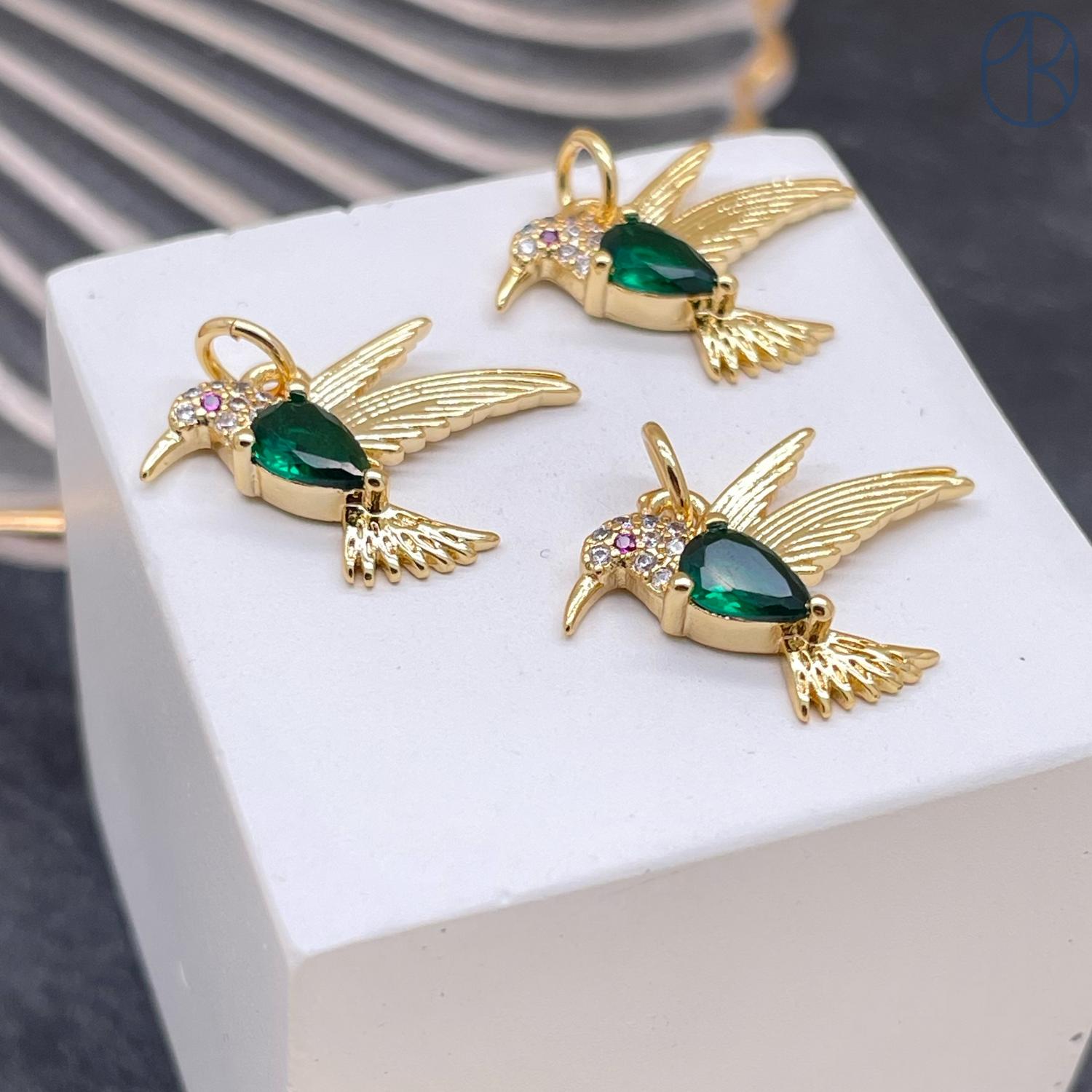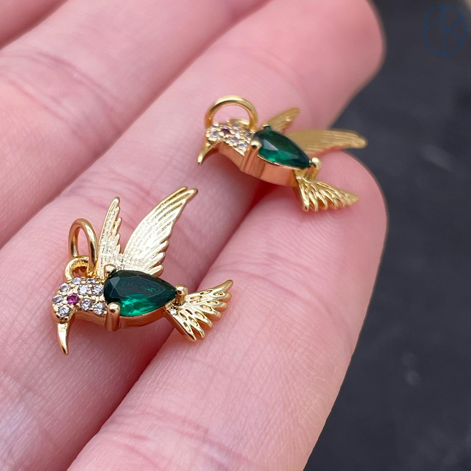 Подвеска колибри зеленый циркон, цвет золото 19х22 мм