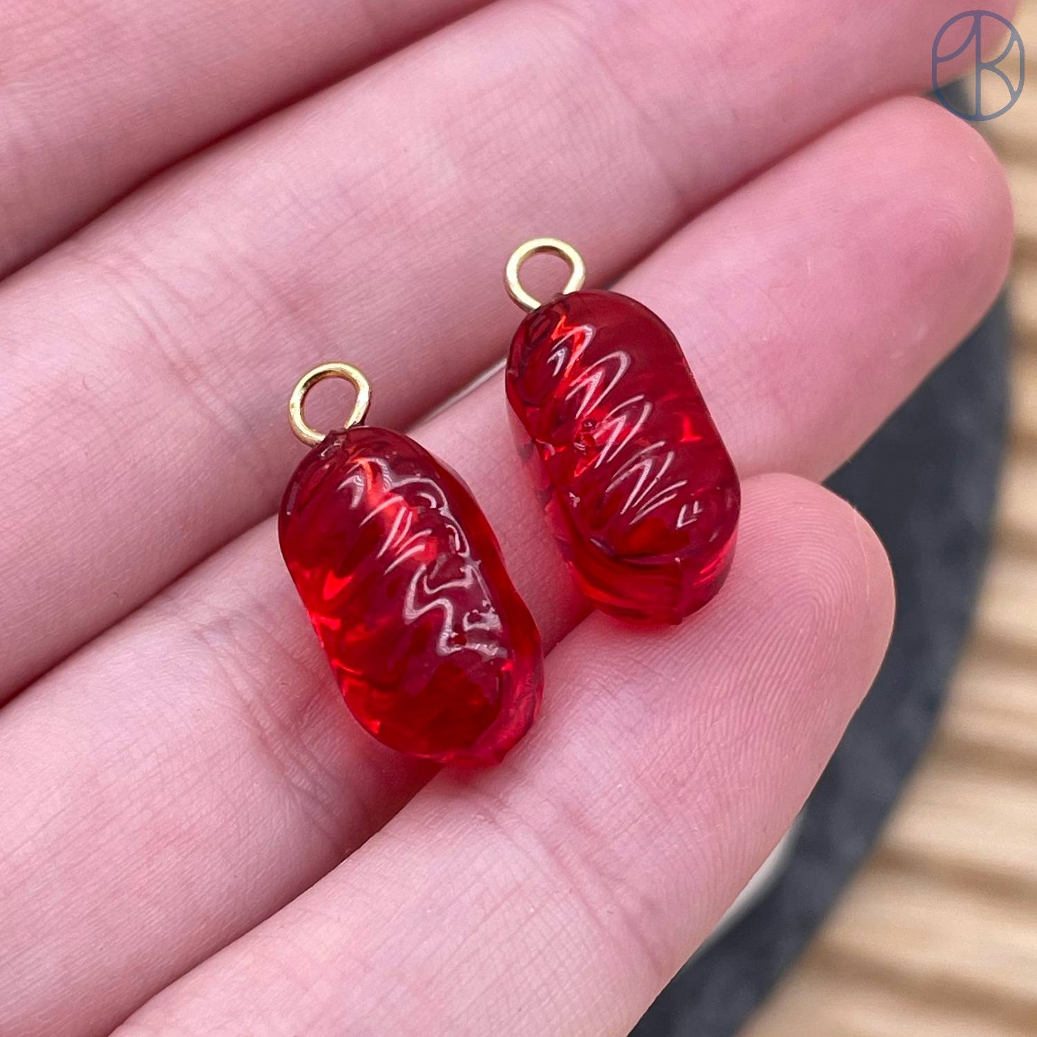Подвеска конфета карамель красная, цвет золото ~ 14 мм