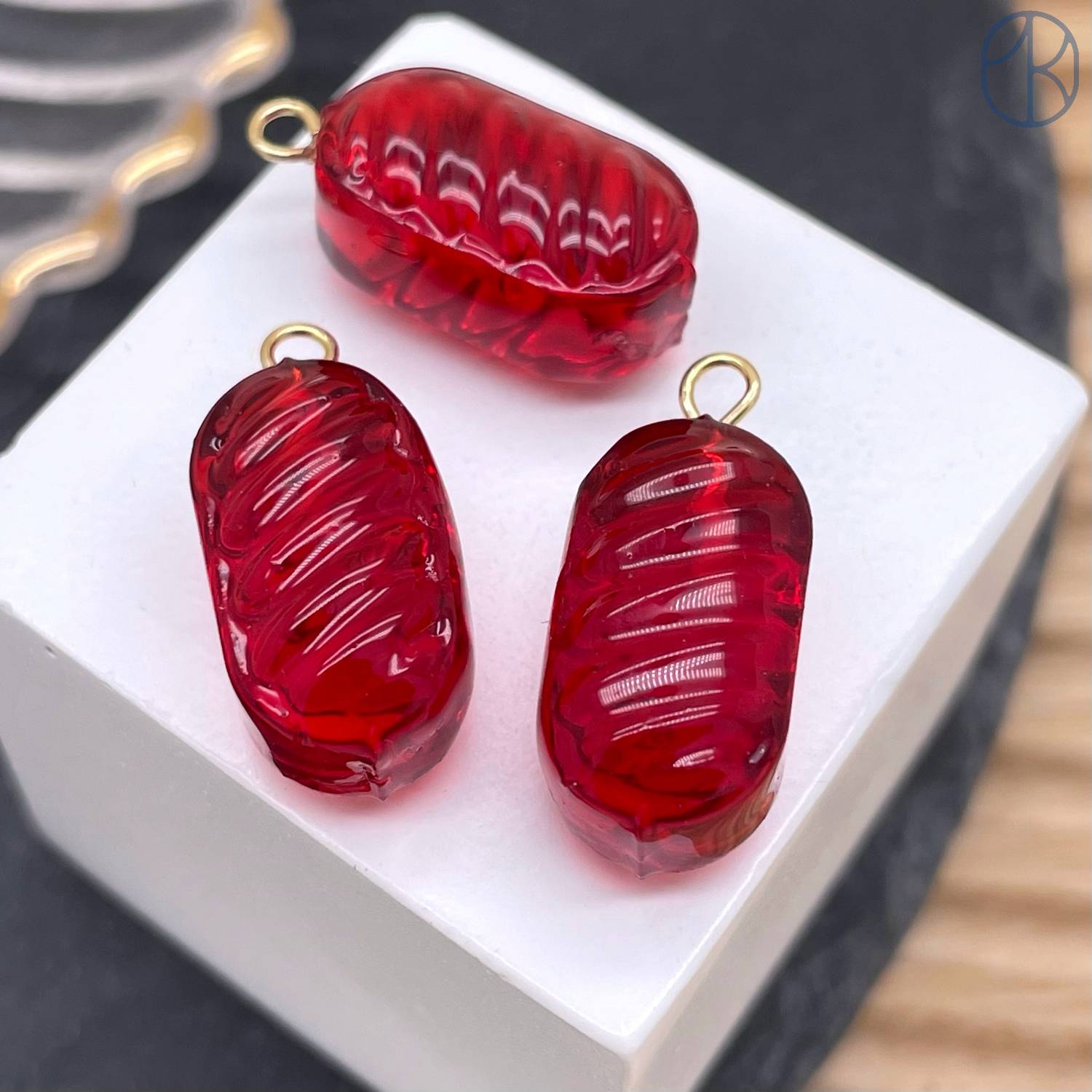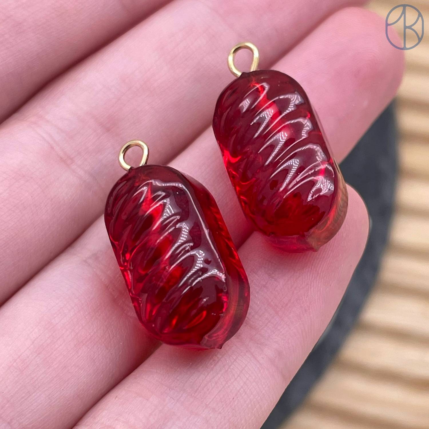Подвеска конфета карамель красная, цвет золото ~ 19 мм