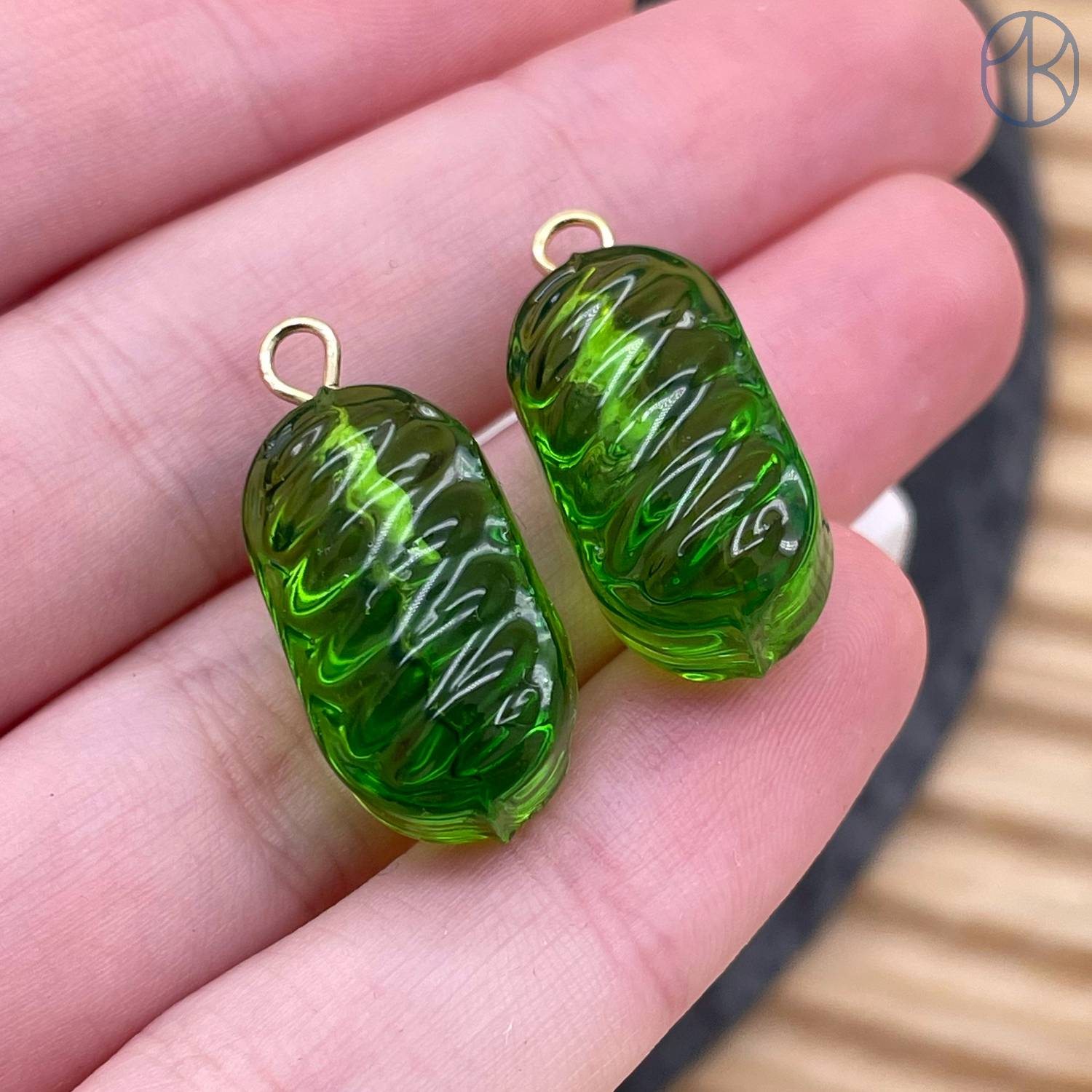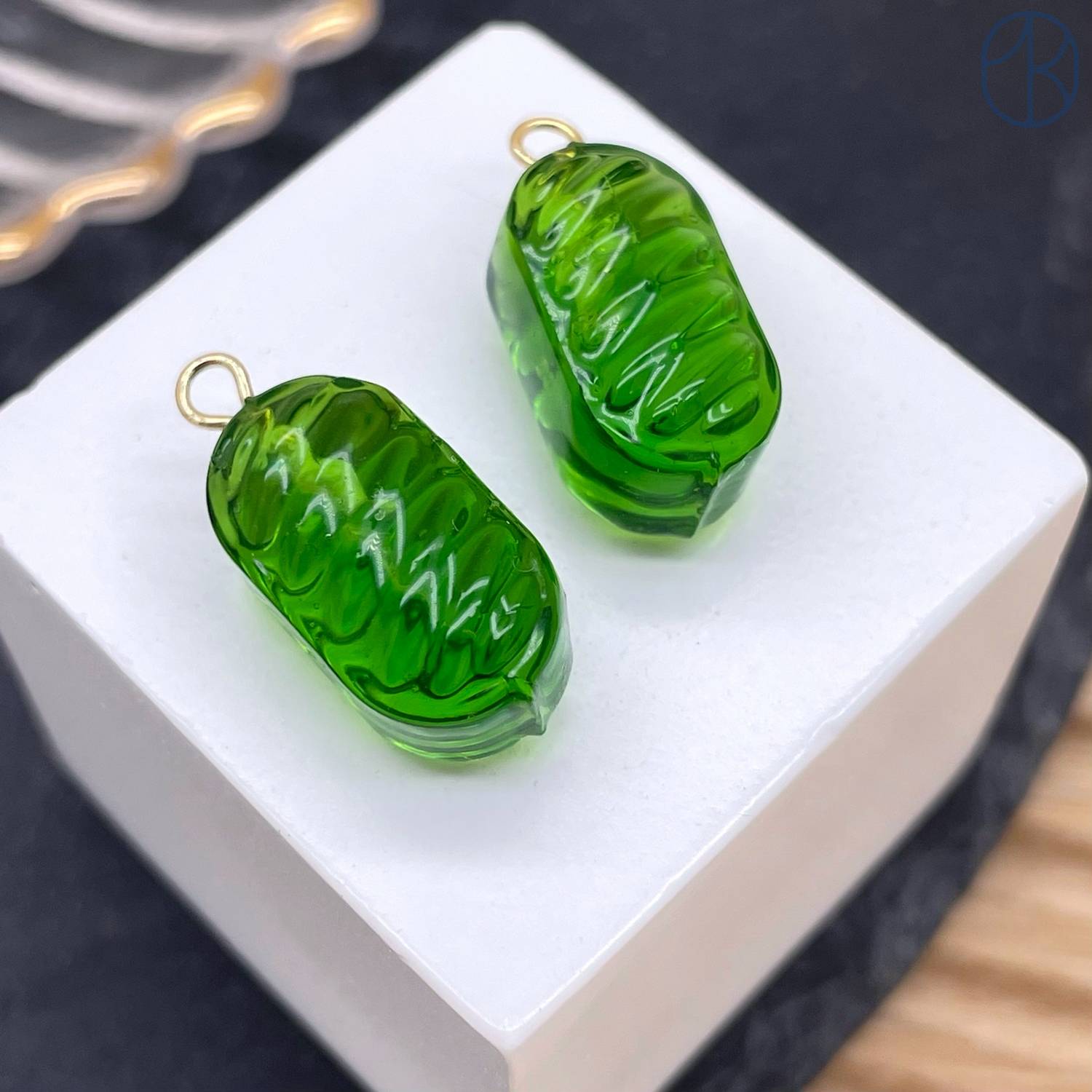 Подвеска конфета карамель зеленая, цвет золото ~ 19 мм