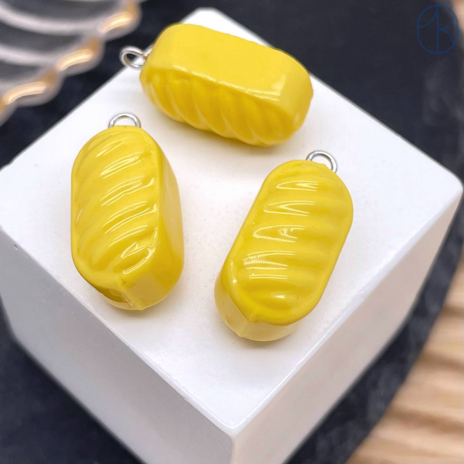 Подвеска конфета карамель желтая, цвет серебро ~ 19 мм