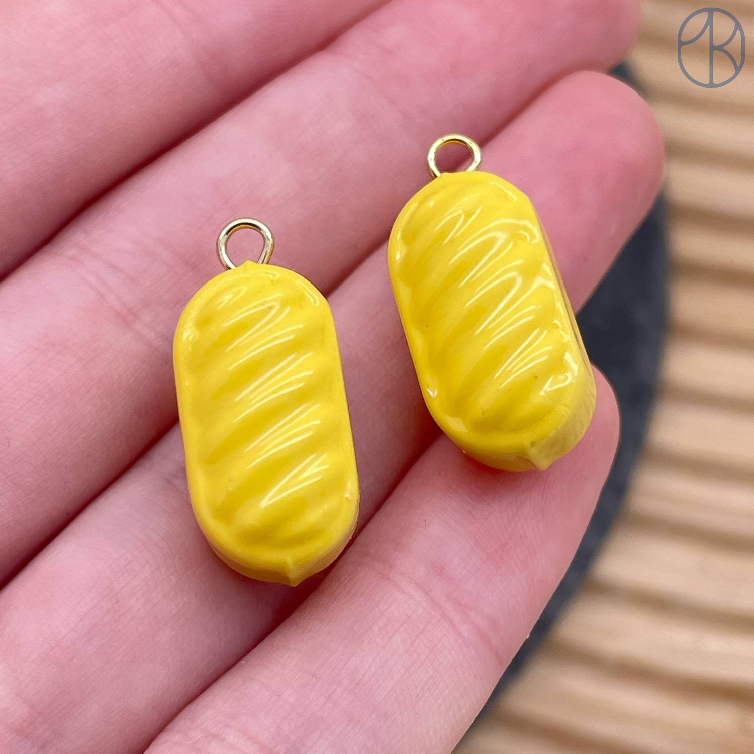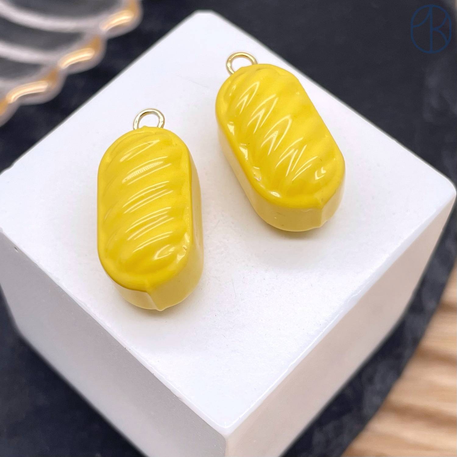 Подвеска конфета карамель желтая, цвет золото ~ 19 мм