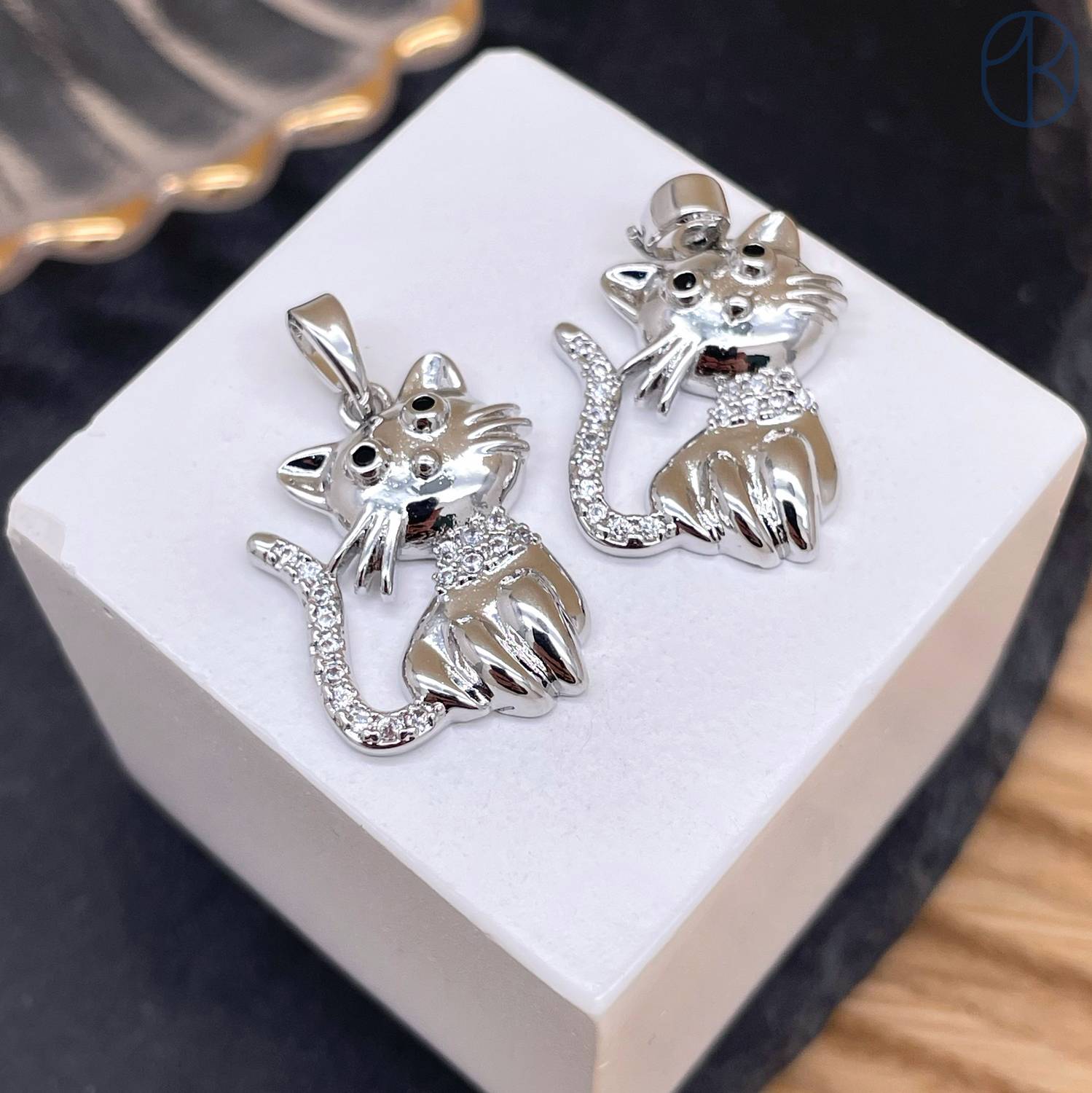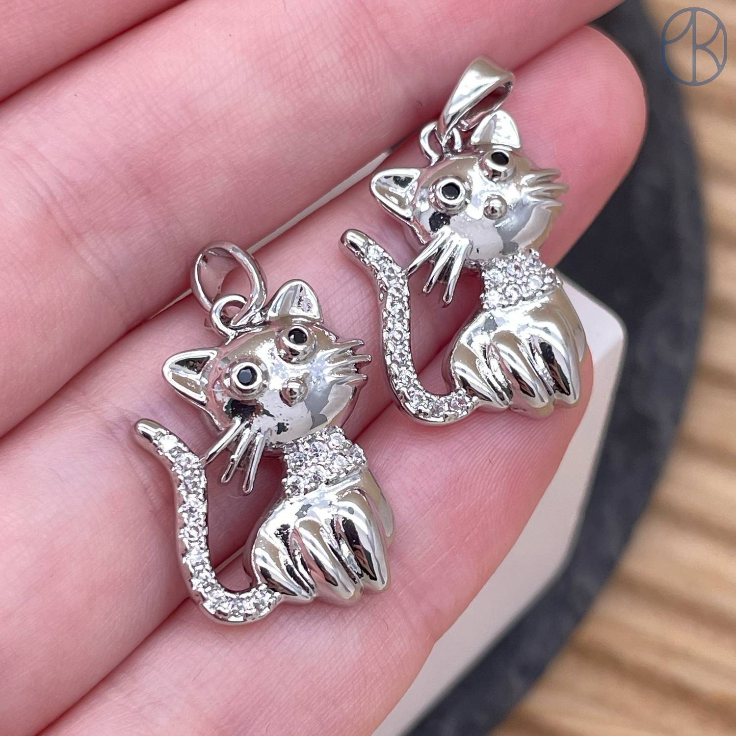 Подвеска кот цирконы, цвет серебро 20 мм