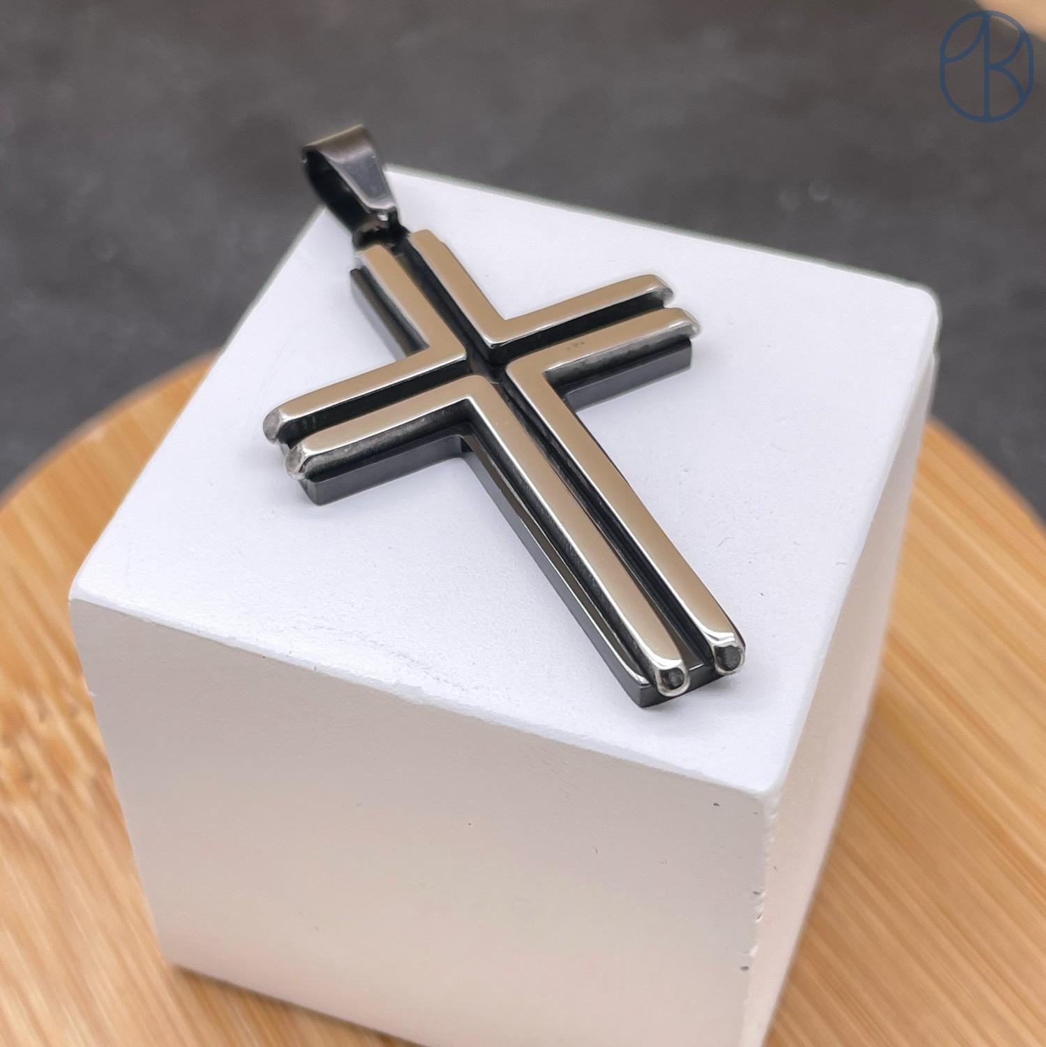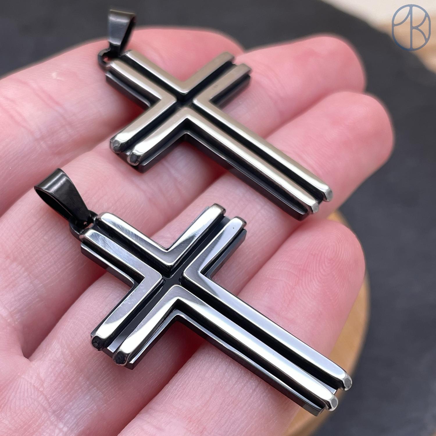 Подвеска крест №3 сталь 37Х26 мм, цвет серебро с чернение