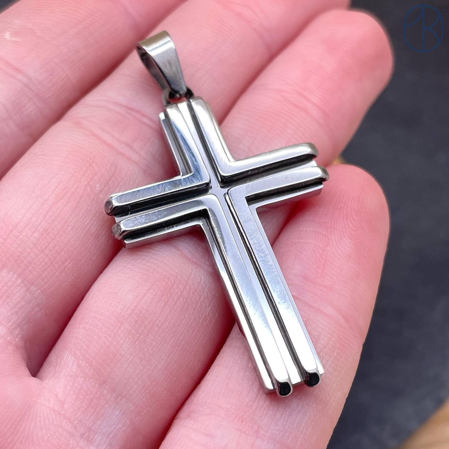 Подвеска крест №3 сталь 37Х26 мм, цвет серебро