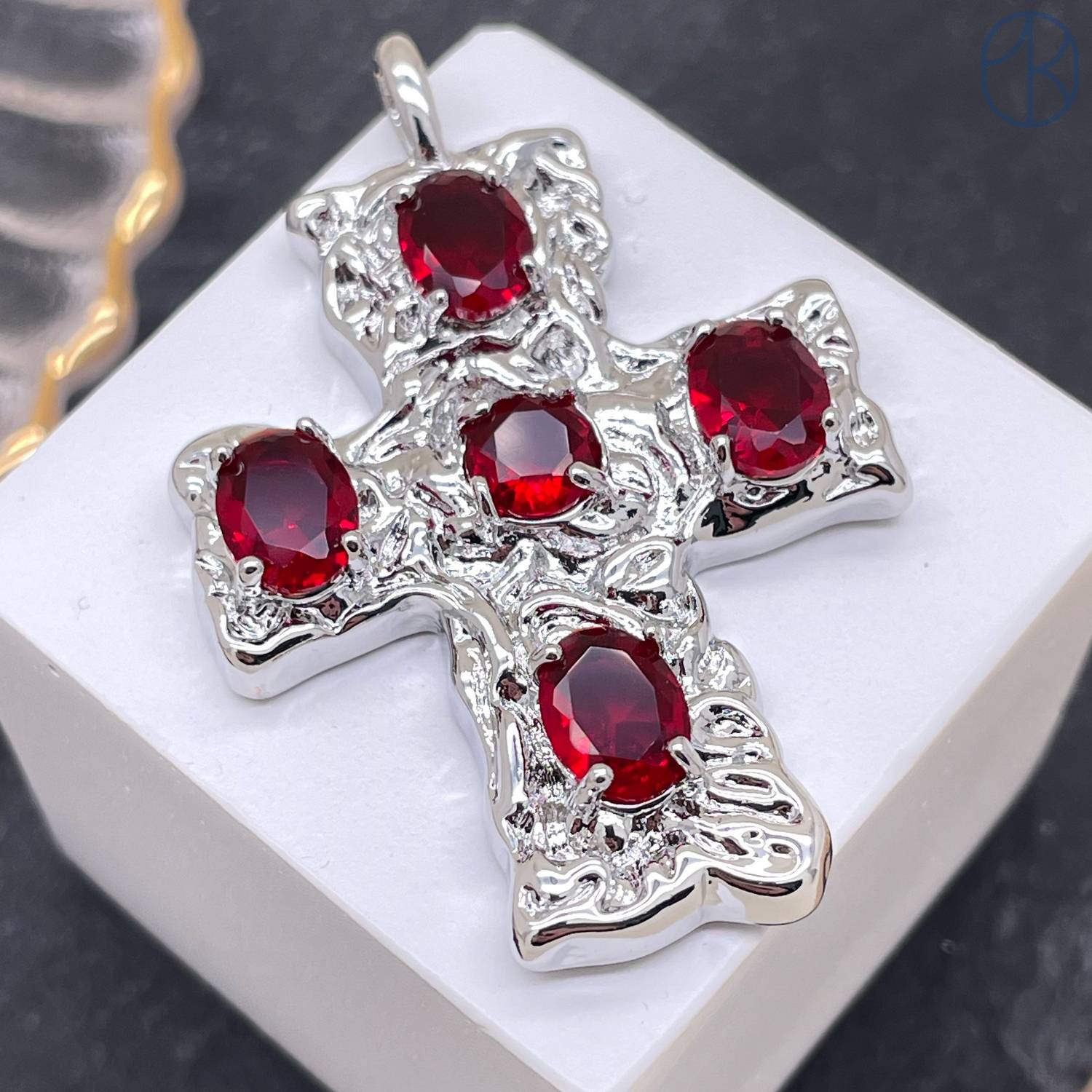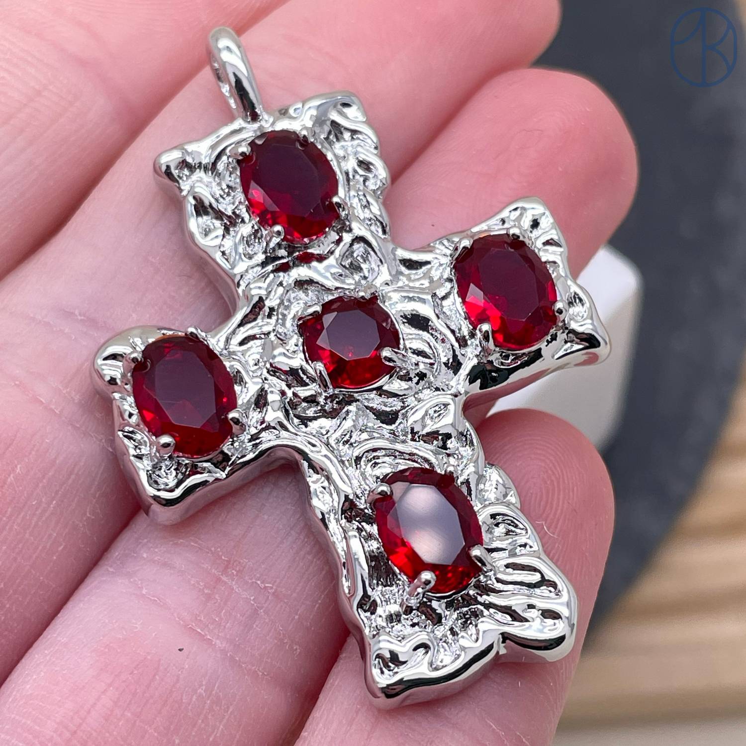 Подвеска крест красные цирконы, цвет серебро 40 мм