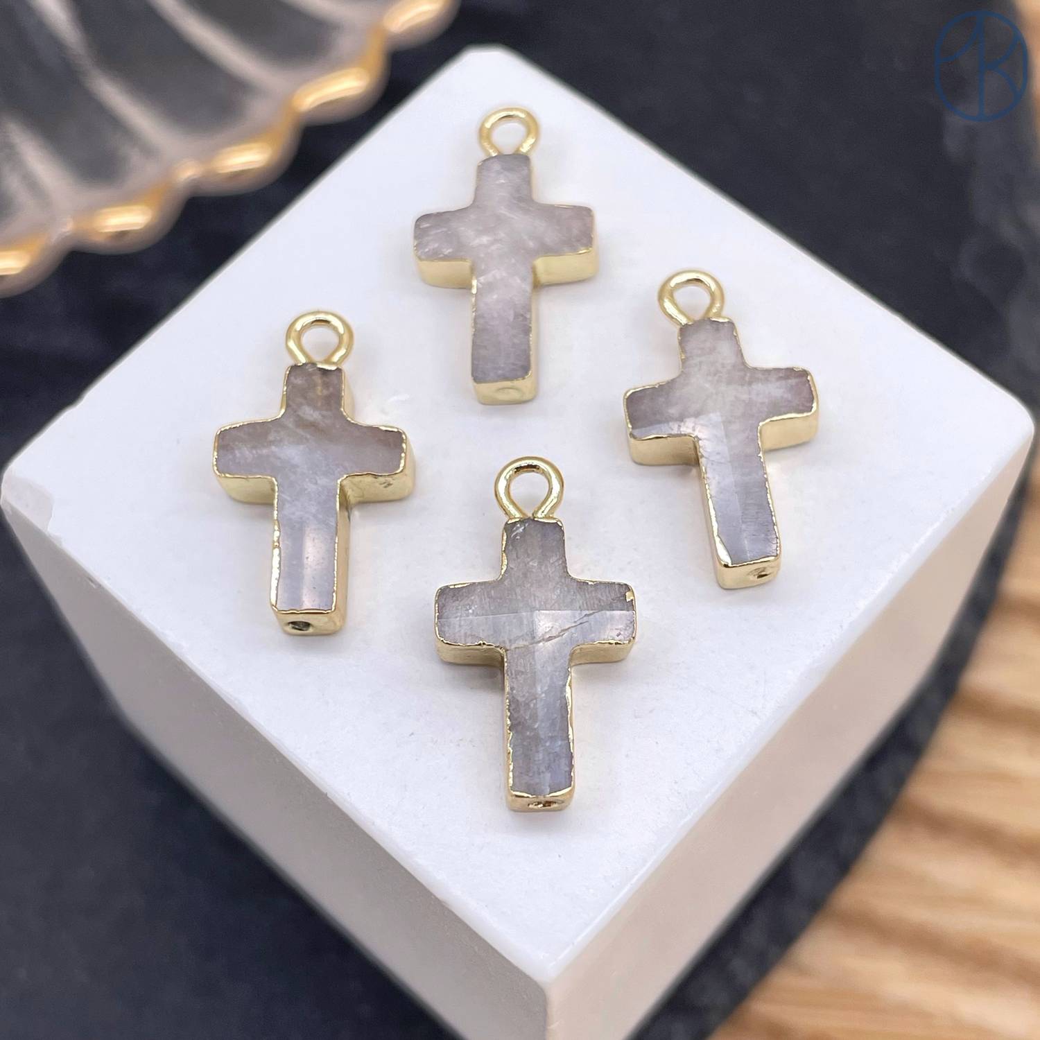 Подвеска крест лунный камень, цвет золото 14х10 мм