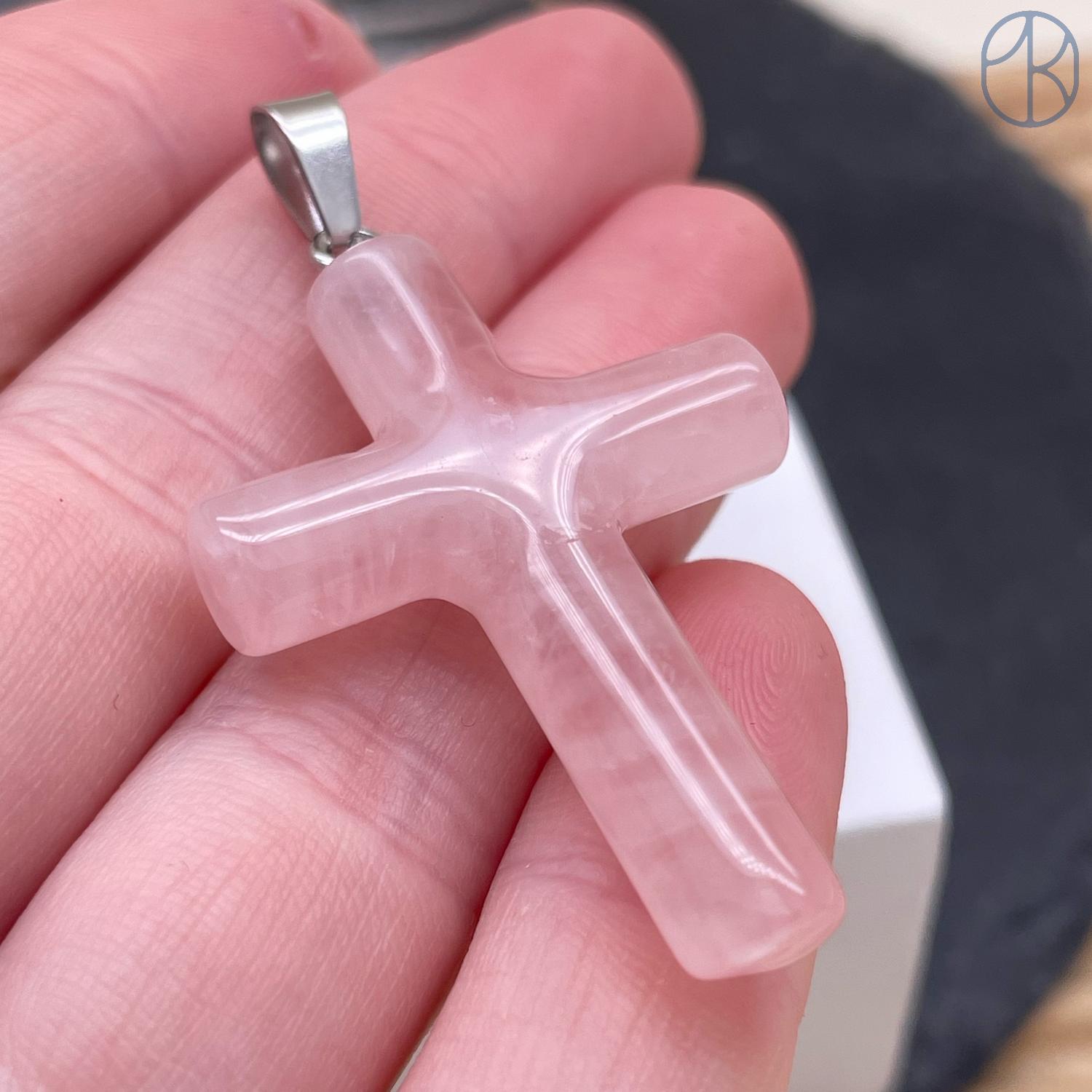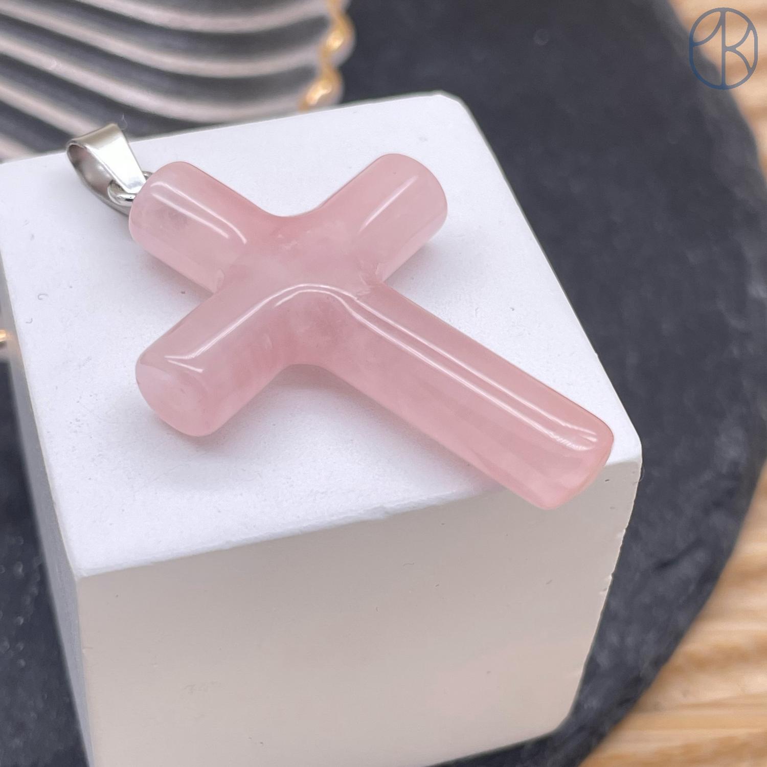 Подвеска крест розовый кварц, цвет серебро 40х28 мм