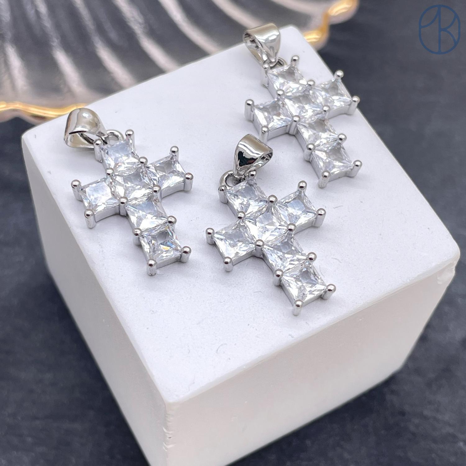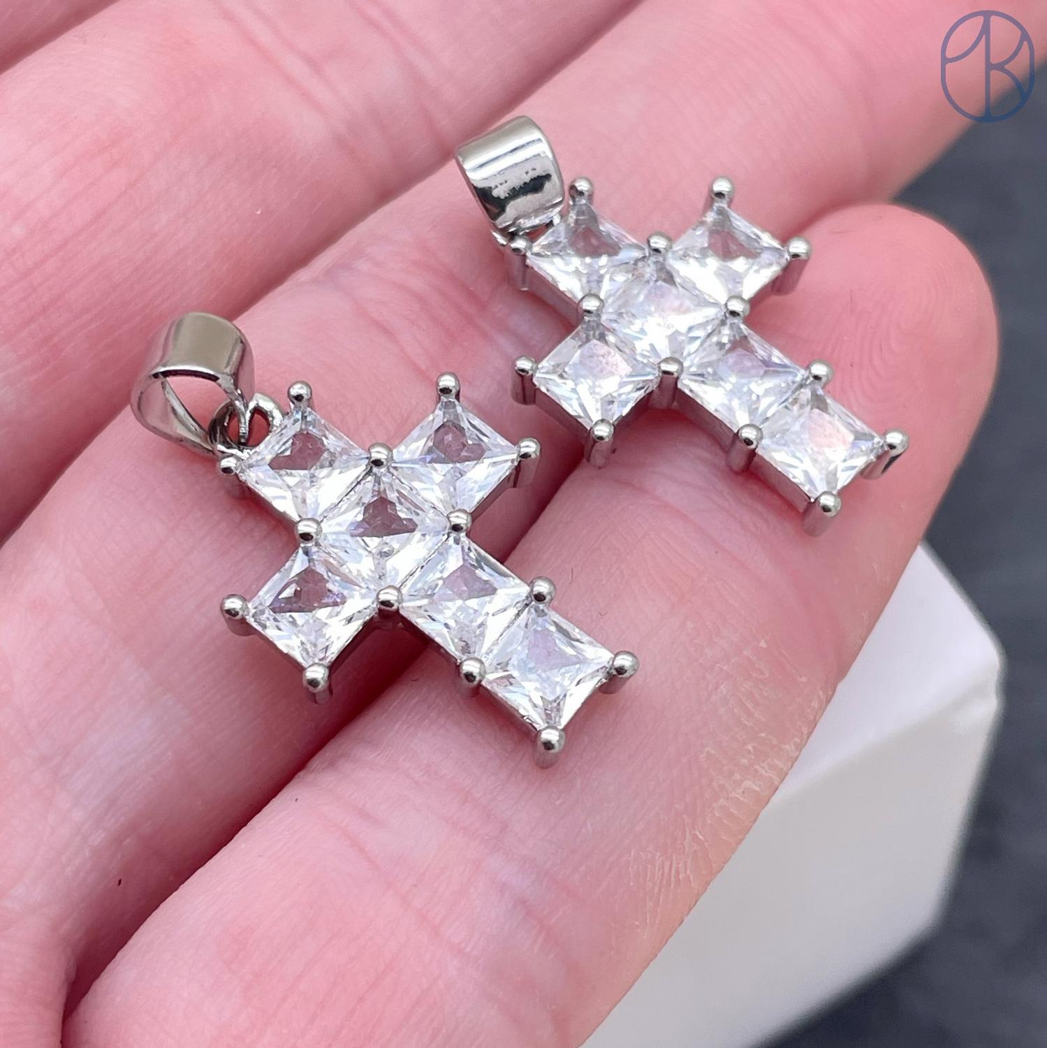 Подвеска крест цирконы, цвет серебро 20х13,5 мм