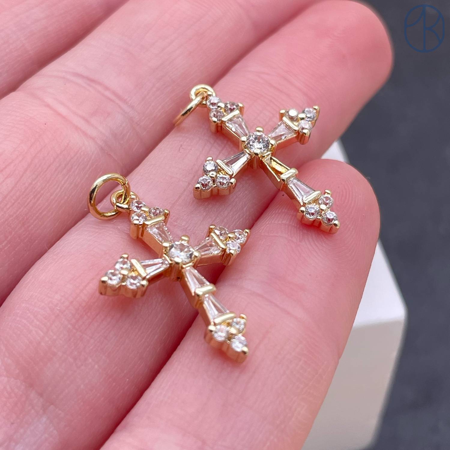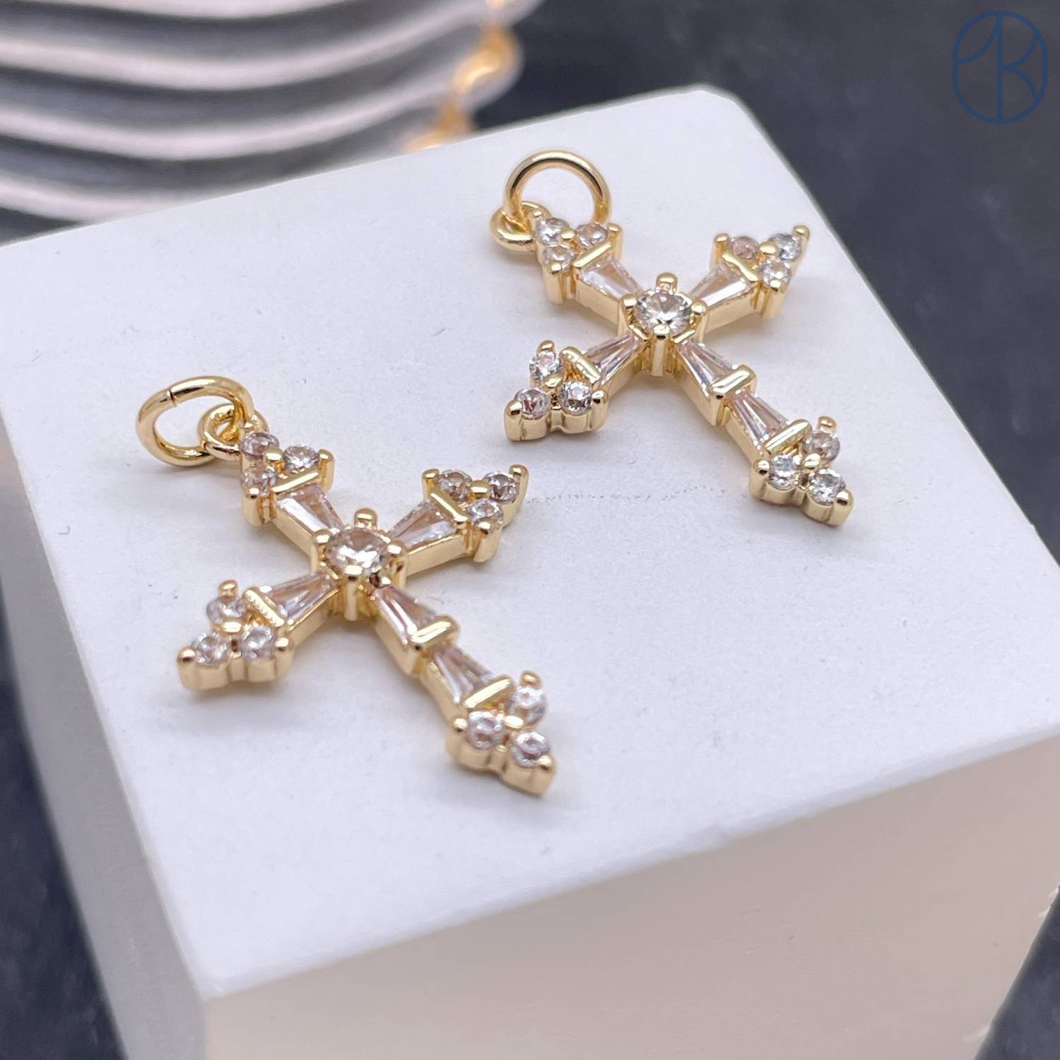 Подвеска крест цирконы, цвет золото 21х16 мм