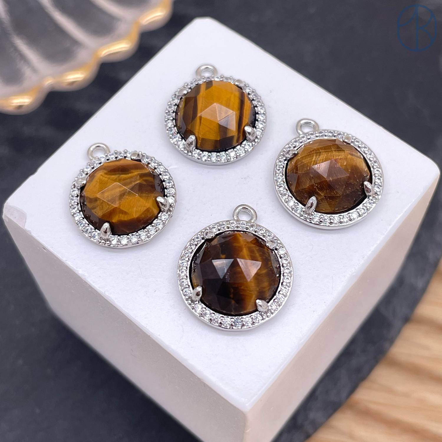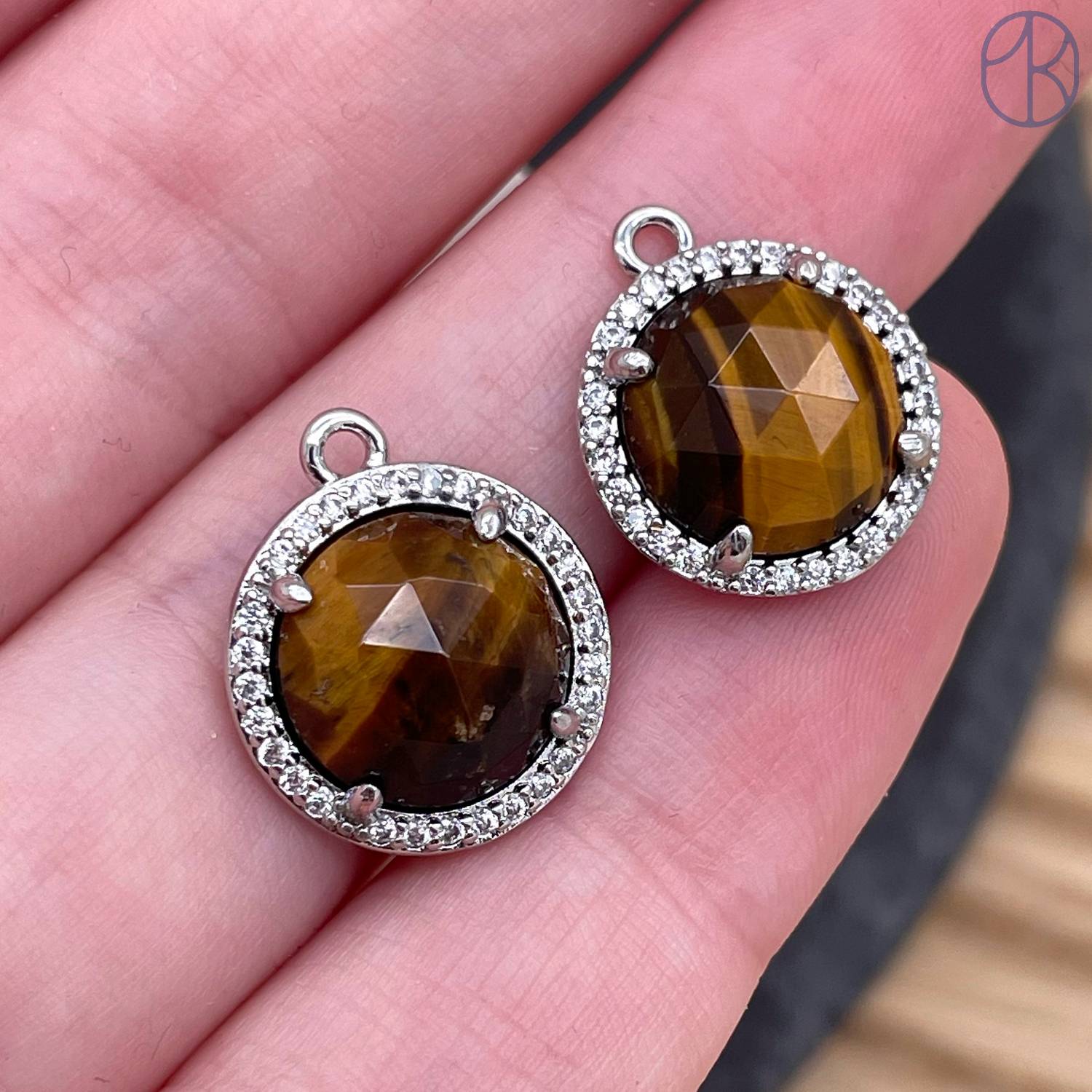Подвеска круг огранка цирконы тигровый глаз, цвет серебро 13 мм