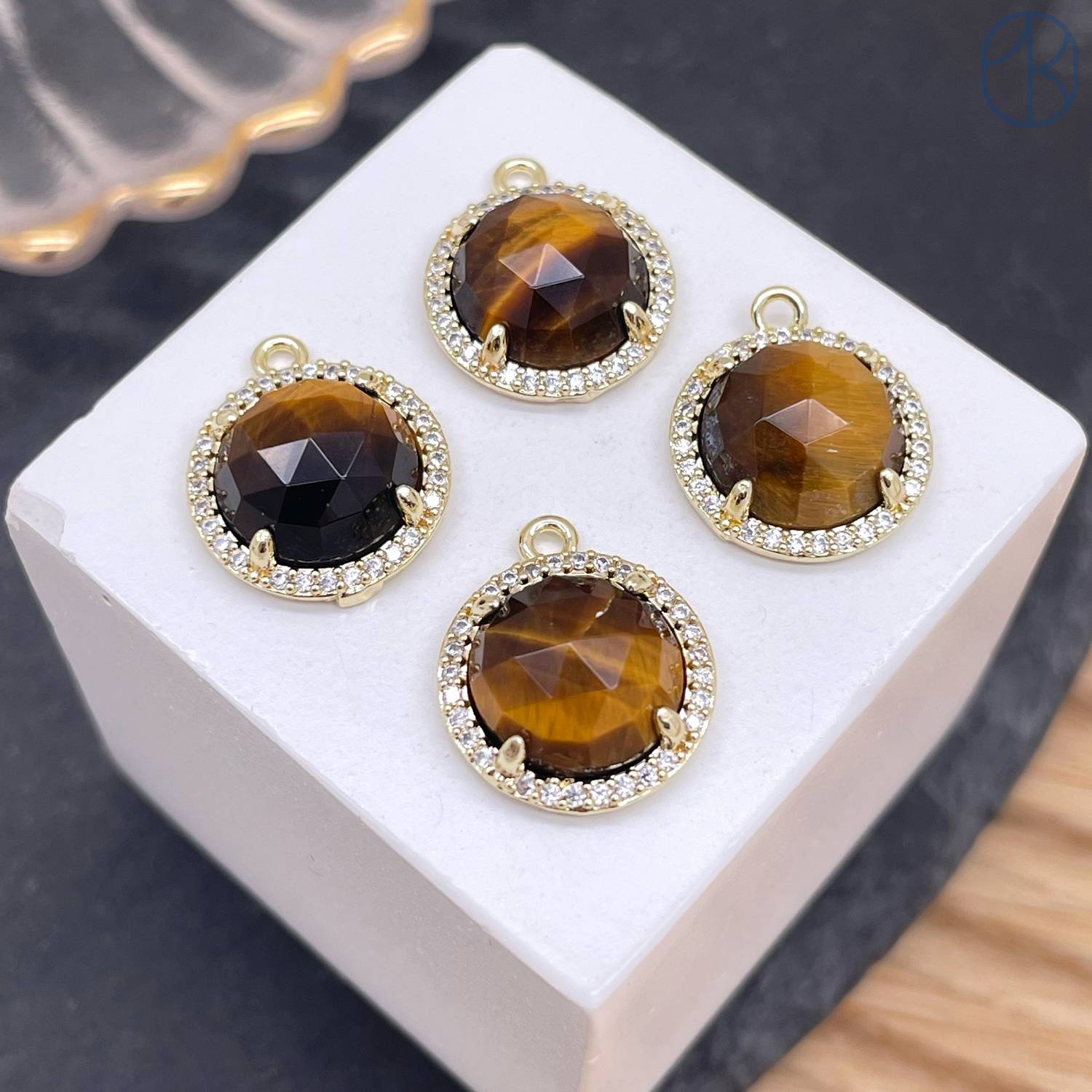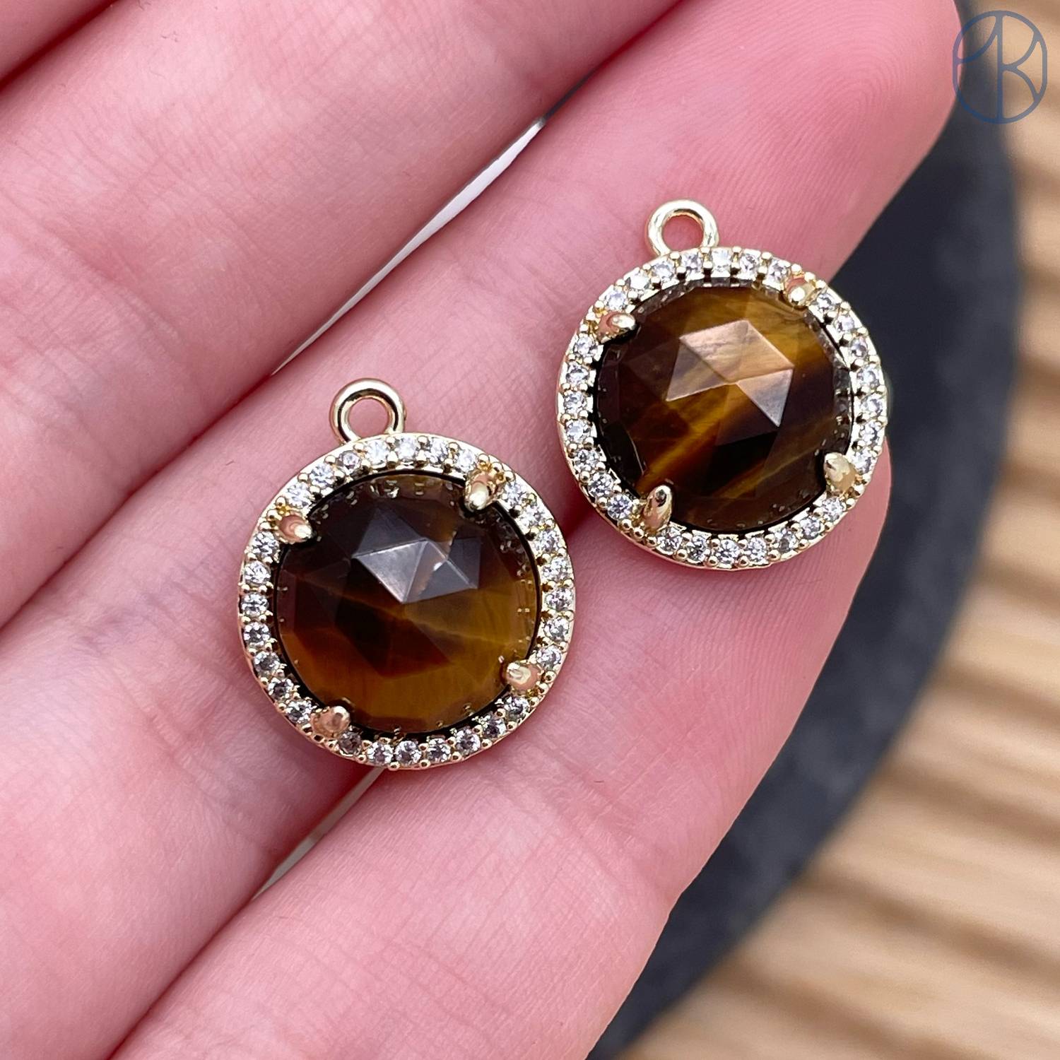 Подвеска круг огранка цирконы тигровый глаз, цвет золото 13 мм