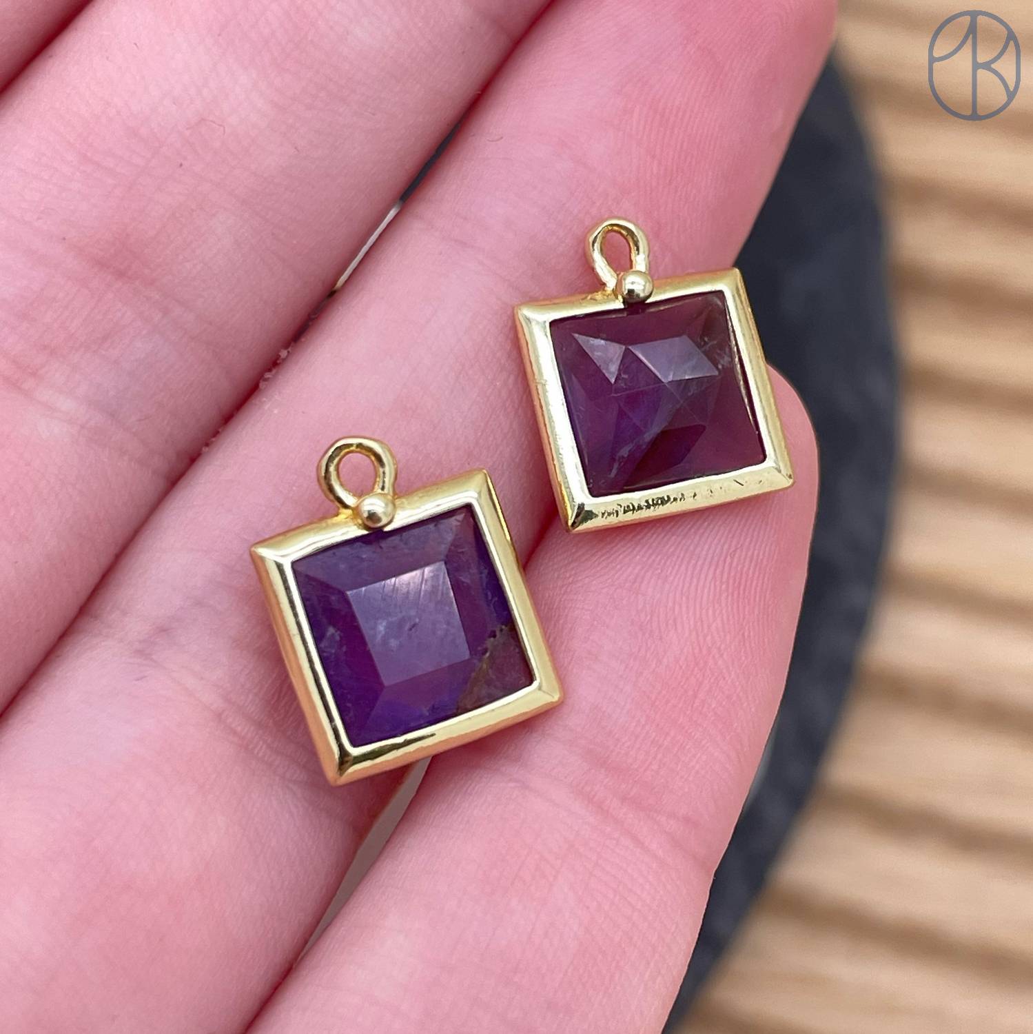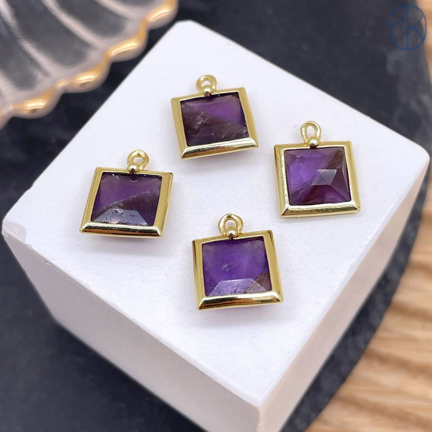 Подвеска квадрат огранка аметист, цвет золото 10 мм