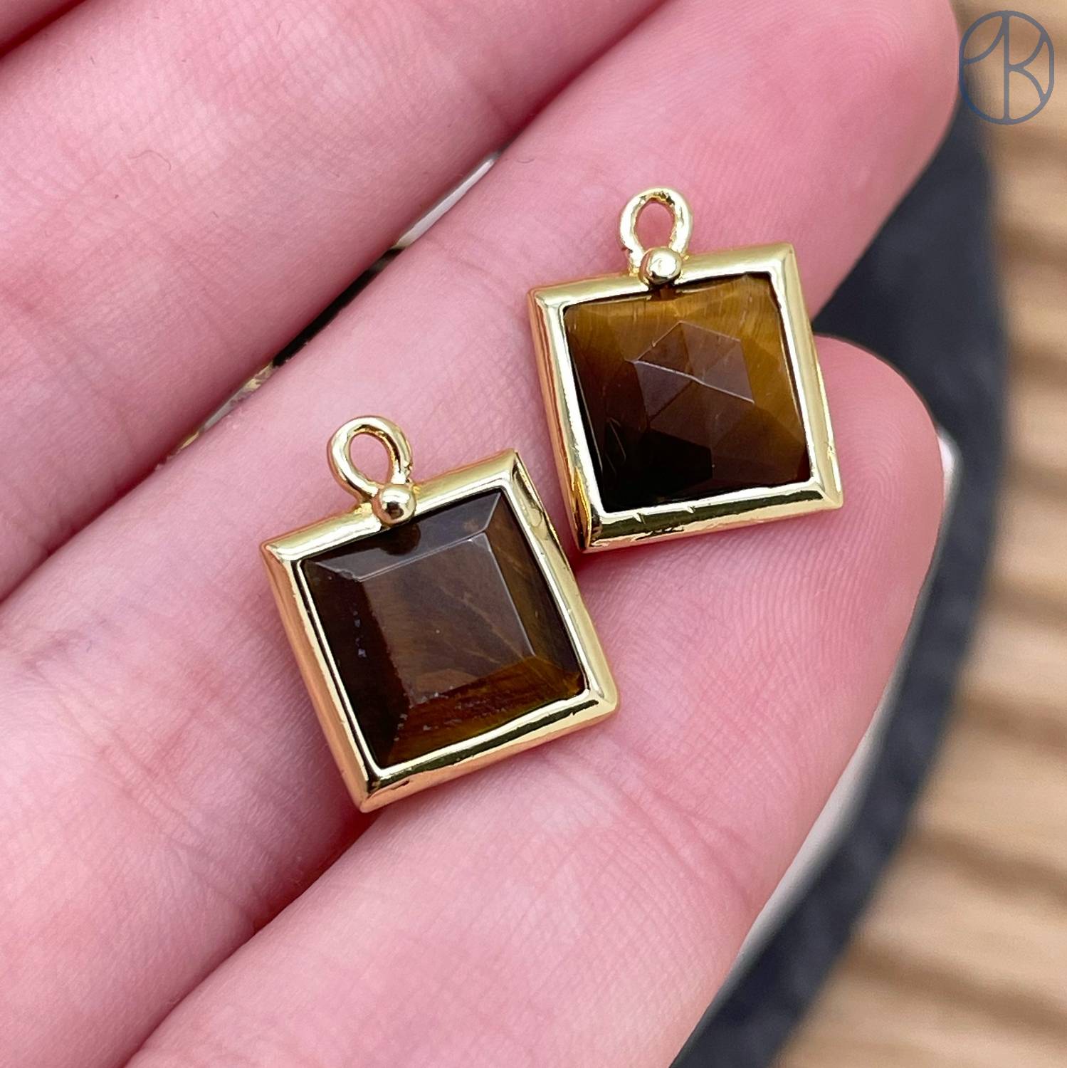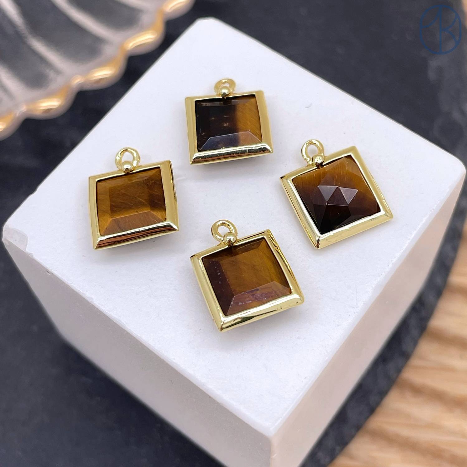 Подвеска квадрат огранка тигровый глаз, цвет золото 10 мм