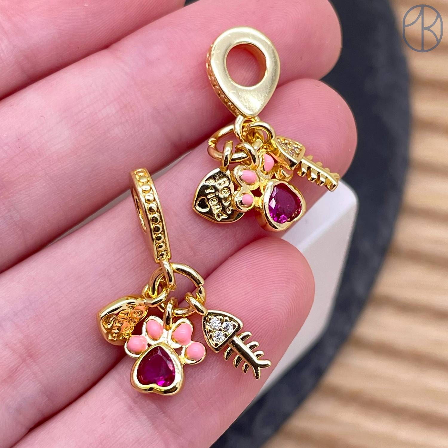 Подвеска лапка, рыбка и сердце, цвет золото 10 мм